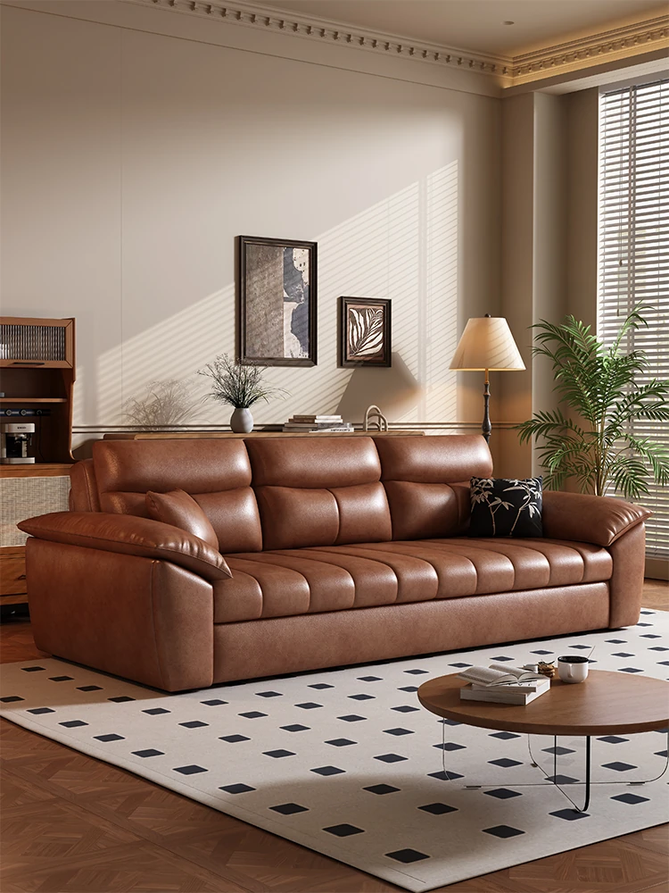 レトロ風オイルワックスレザー本革ソファベッド - 洗える2WAYデザイン、小型リビングに最適な軽奢華感を演出!
