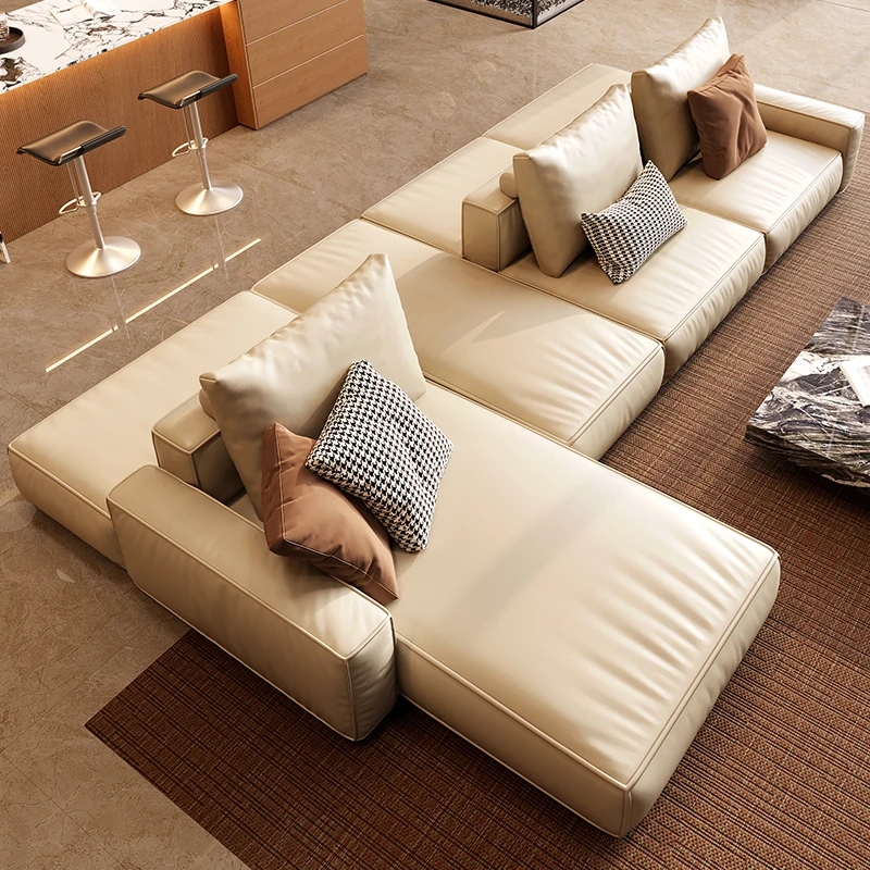 [Free Shipping to Hong Kong] Italian Minimalist Double-Sided Genuine Leather Sofa - Versatile Russian Square Modular Design for Spacious Living Rooms