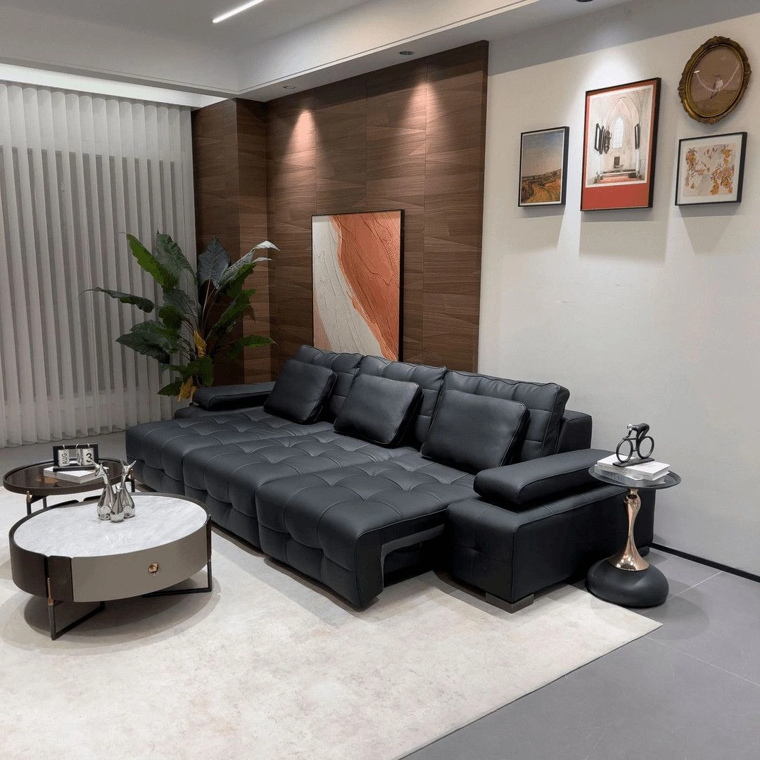 Lawrence Minimalist Electric Function Leather Sofa - Premium Italian Genuine Leather Sofa Set for Small Living Rooms, Featuring Versatile and Space-Saving Design.