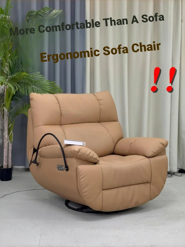 Multi-Functional Electric Recliner Sofa Chair - Trending Single Seat for Living Room, Made of Premium Top-Grain Leather, Smart Space Capsule Design with Rotating and Reclining Features