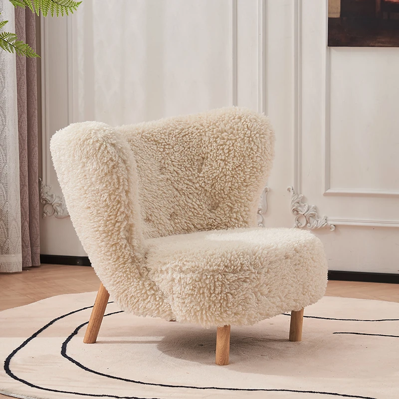 Cozy Lambswool White Lazy Sofa Chair - Trendy INS Style for Balcony Relaxation, Nordic Single Chair with Long Fur for Bedroom Comfort
