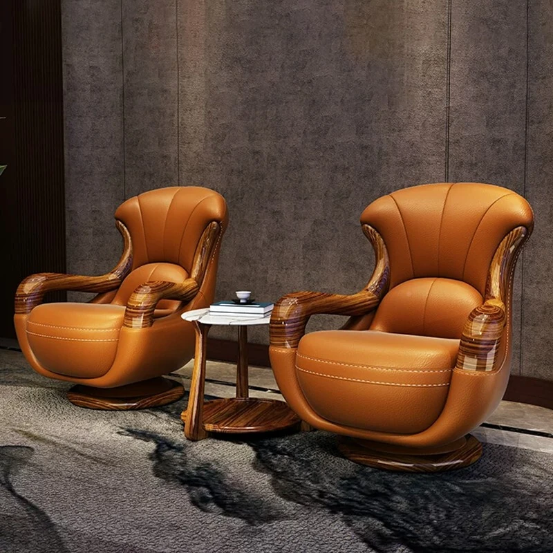 Elegant Wooden High-Back Armchair - Uke Xuan 06# Modern Reclining Sofa for Living Room, Balcony, or Bedroom - Stylish Faux Leather, Perfect for Relaxation and Comfort
