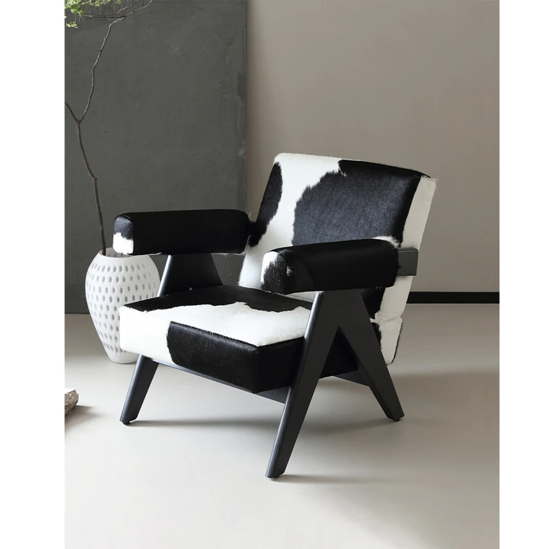 Solid Wood Single Sofa Chair - Chandigarh Design, Cowhide Upholstery, Vintage Lounge and Meeting Chair for Your Living Room