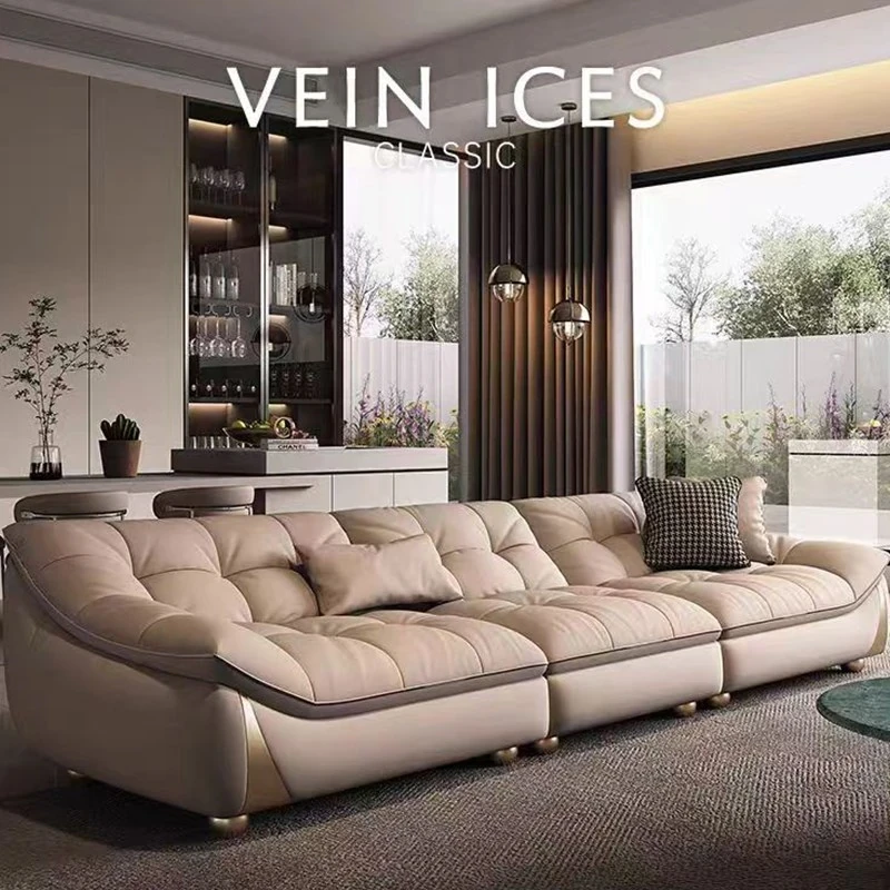 2024 New Arrival: Modern Light Luxury Cream-Style Down Sailboat Sofa Made with Genuine Top-Grain Leather - Perfect for Your Living Room or Villa!