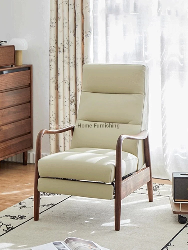 North American Black Walnut Functional Sofa Chair - Adjustable Lazy Single Seat, Reclining and Sitting, Solid Wood Leisure Armchair