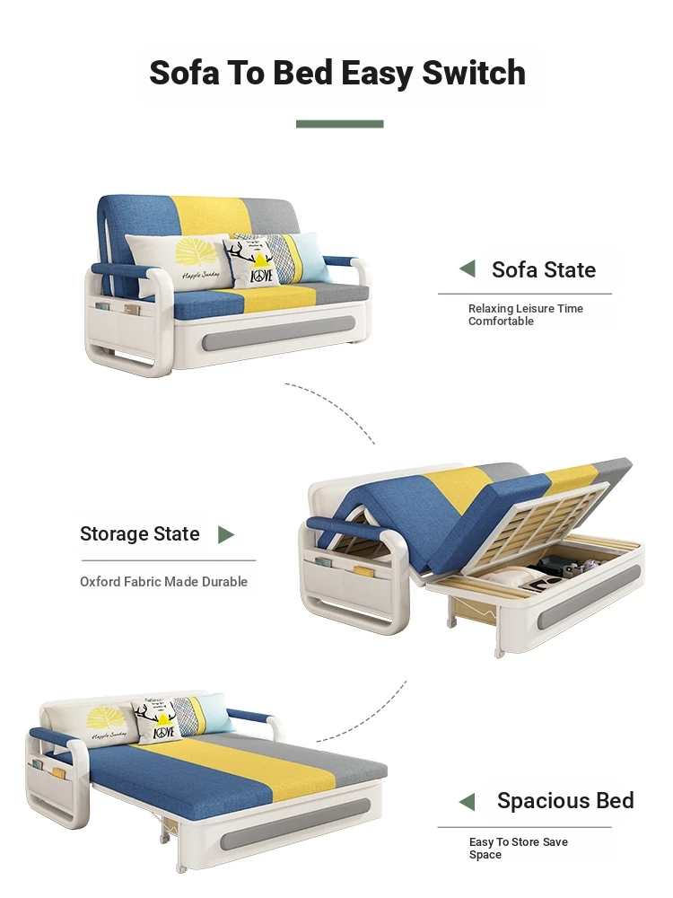 Compact Solid Wood Folding Sofa Bed - Multi-Functional Cream-Style Expandable Bed for Small Spaces with Storage Solution for Your Living Room
