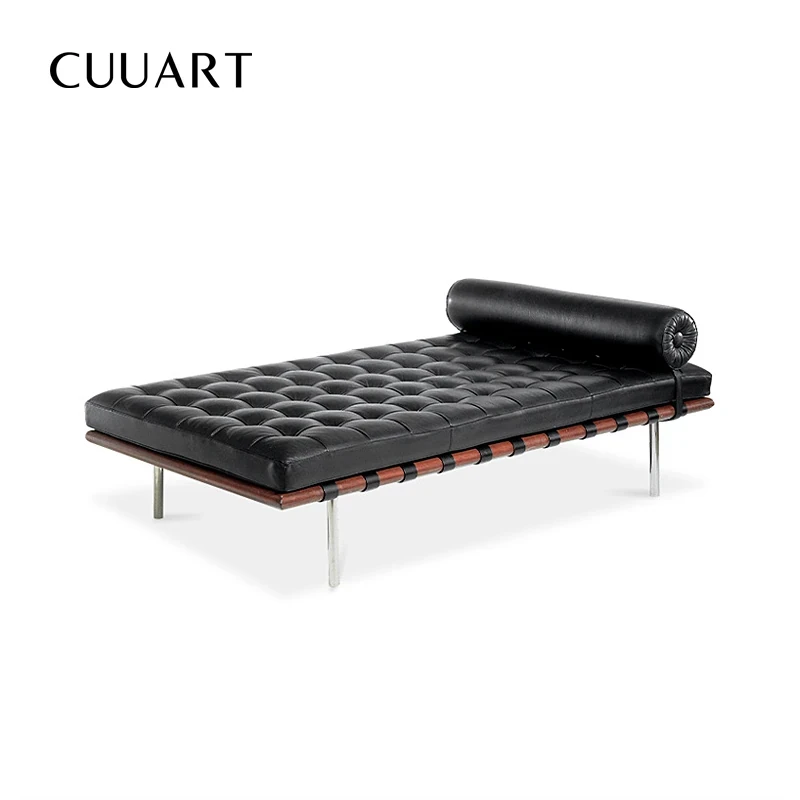 Barcelona Modern Minimalist Sofa Bed - Perfect for Home, Office & Leisure! Ideal for Napping in Living Rooms & Studies, Featuring Genuine Leather for Ultimate Comfort.