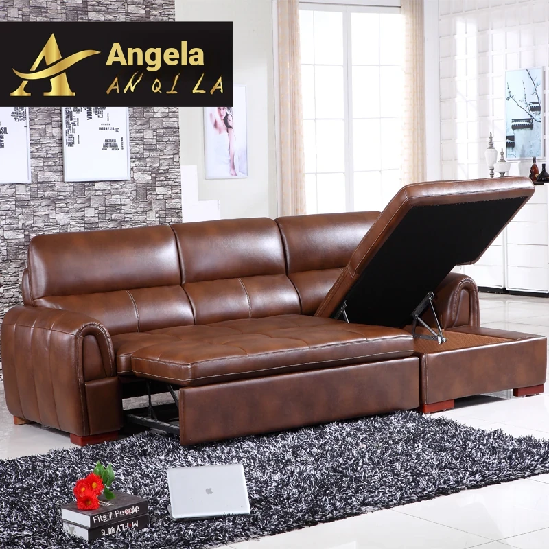 Genuine Leather Corner Sofa - Versatile Two-in-One Sofa Bed for Living Rooms of All Sizes - Top-Grade Cowhide Upholstery, Perfect for Modern Homes