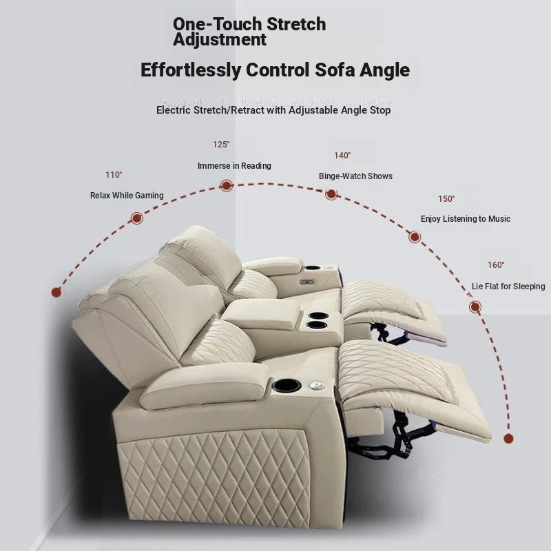 Electric Reclining Sofa for Home Theater - Perfect for Your Basement Villa Cinema Room. Enjoy Unmatched Comfort and Luxury Movie Experience! Direct Sales Available.