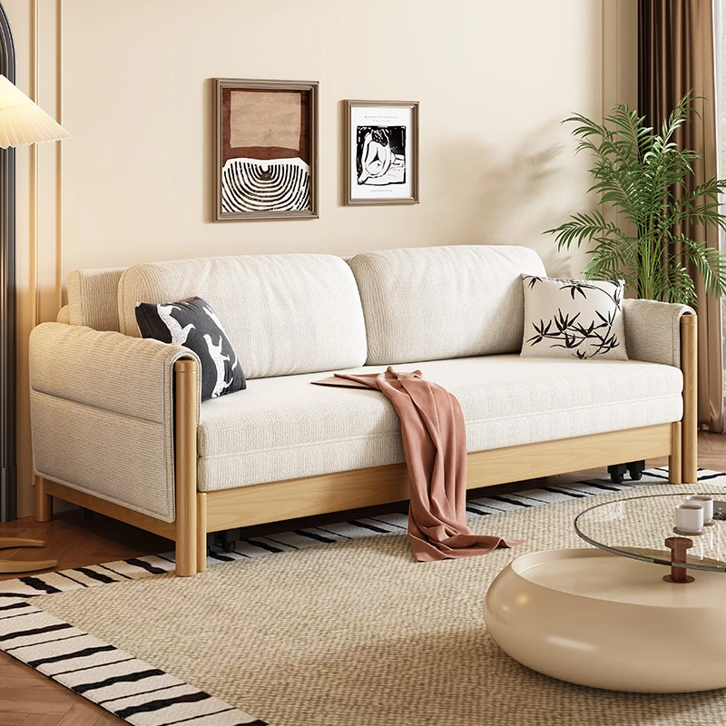 2025 New Foldable Solid Wood Sofa Bed - Stylish Dual-Use Couch for Small Living Rooms, Perfect for Couples and Trendy Spaces!