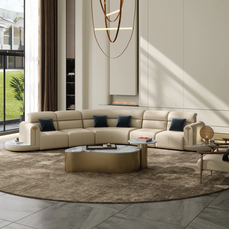 Luxury Genuine Leather Curved Sofa - Italian Style Unique Corner Sofa Set for Villa and Spacious Living Room, Exuding Sophistication and Elegance