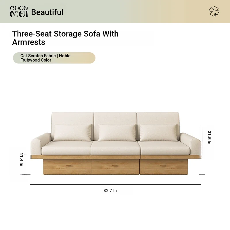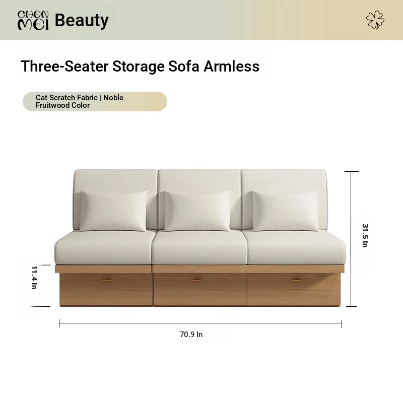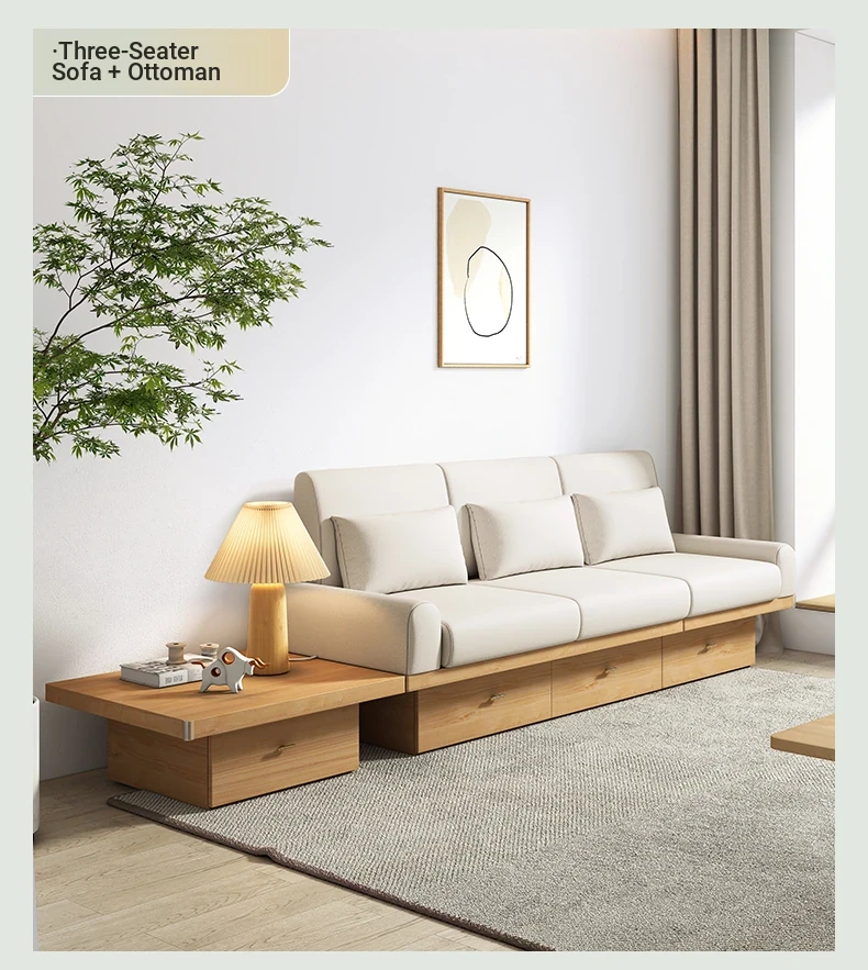 2025 New Minimalist Wabi-Sabi Style Three-Seat Storage Sofa for Small Spaces - Perfect Narrow Sofa for Cozy Homes and Guesthouses