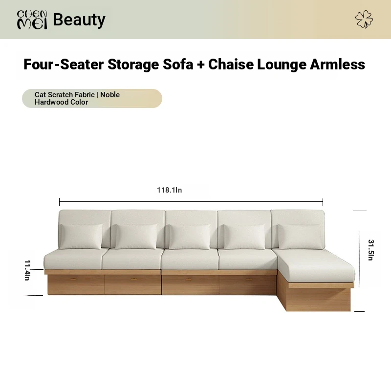 Four-person storage sofa + imperial concubine (without armrest)