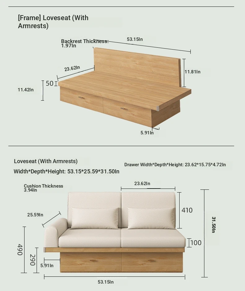 Double storage sofa (without armrests)