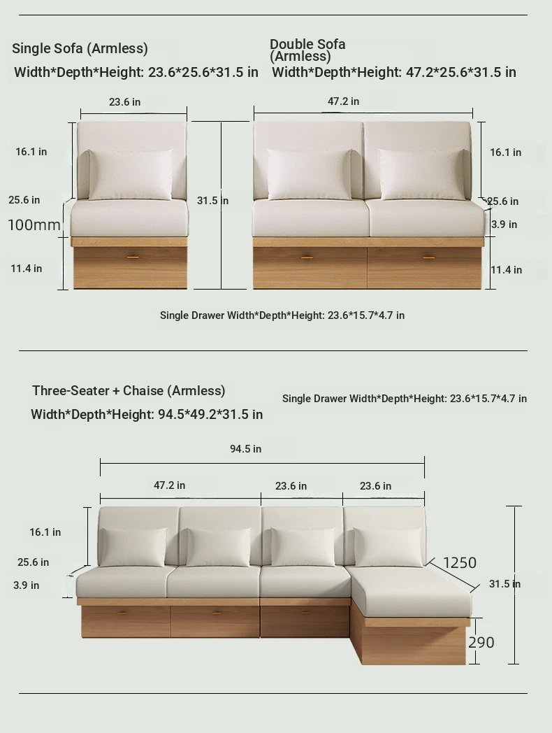 Single storage sofa (without armrests)