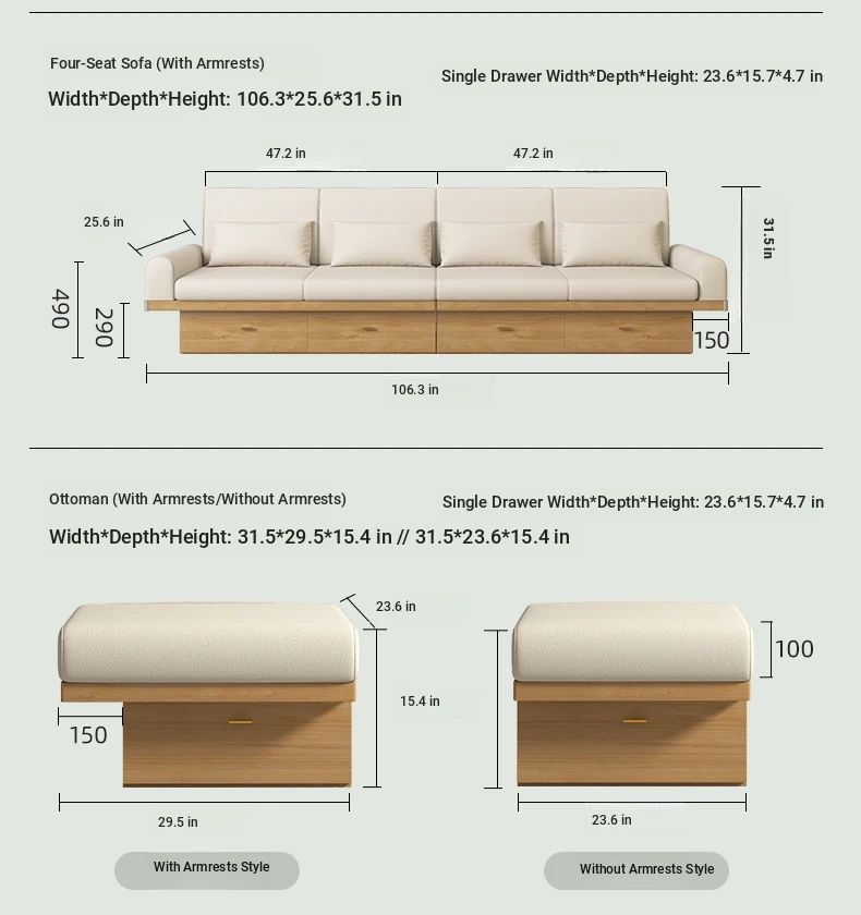 Four-seat storage sofa (without armrests)