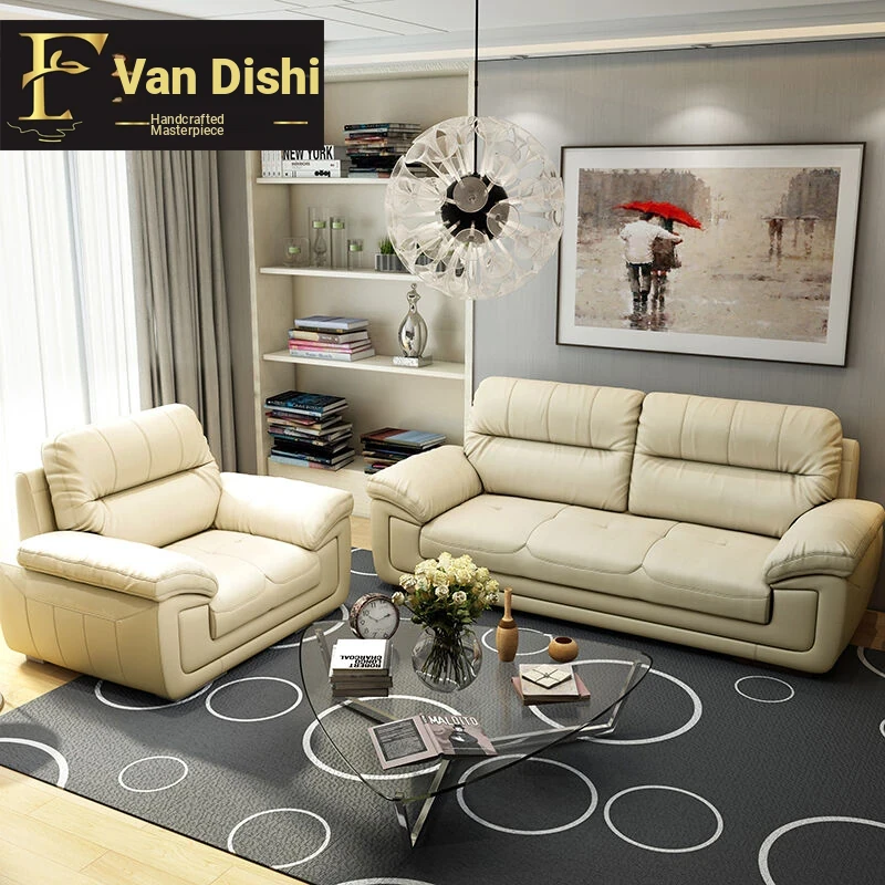 Elegant Leather Office Sofa and Coffee Table Set - Modern Minimalist Reception Seating for Business Meetings - Comfortable 3-Seater for Breaks and Relaxation