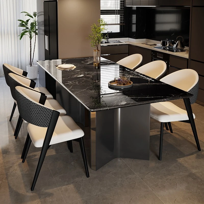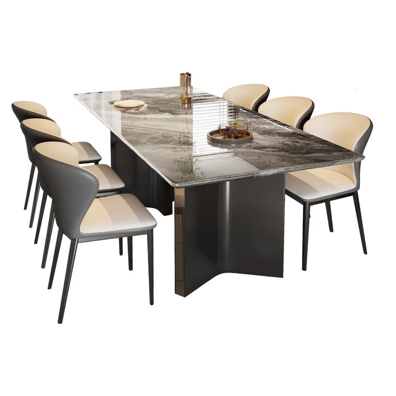 [0.71in Super Crystal Stone] C71# Rectangular Table +8 Cat Scratch Fan-shaped Chairs [Straight Edge Fillet]]