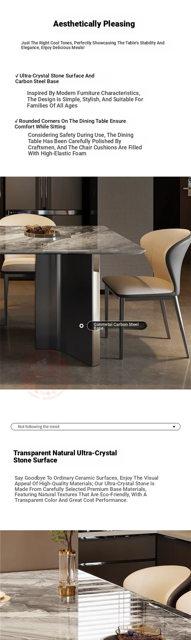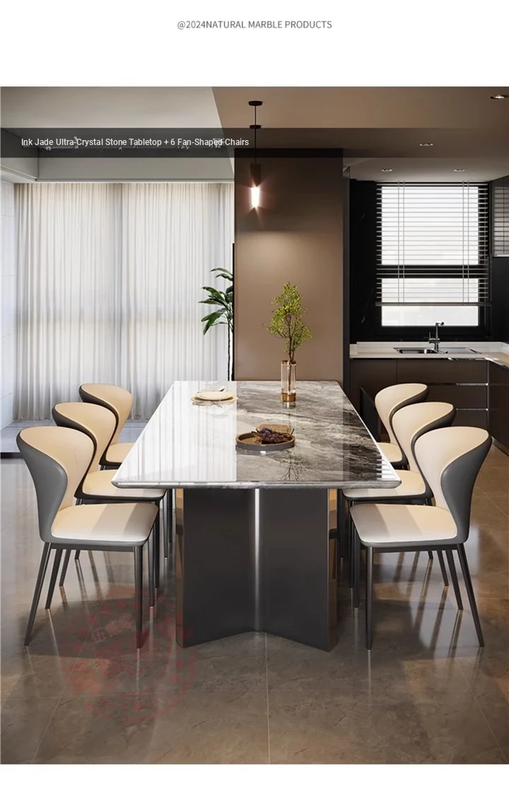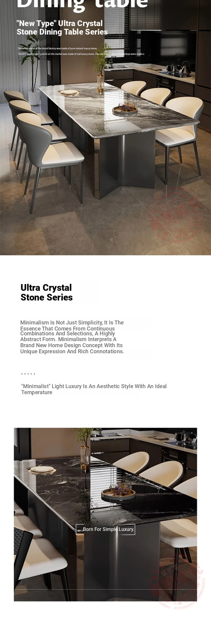 Elegant Rectangular Microcrystal Dining Table - Modern Minimalist Design for Luxurious Homes, Featuring Ultra-Crystal Stone Top for an Upscale Dining Experience