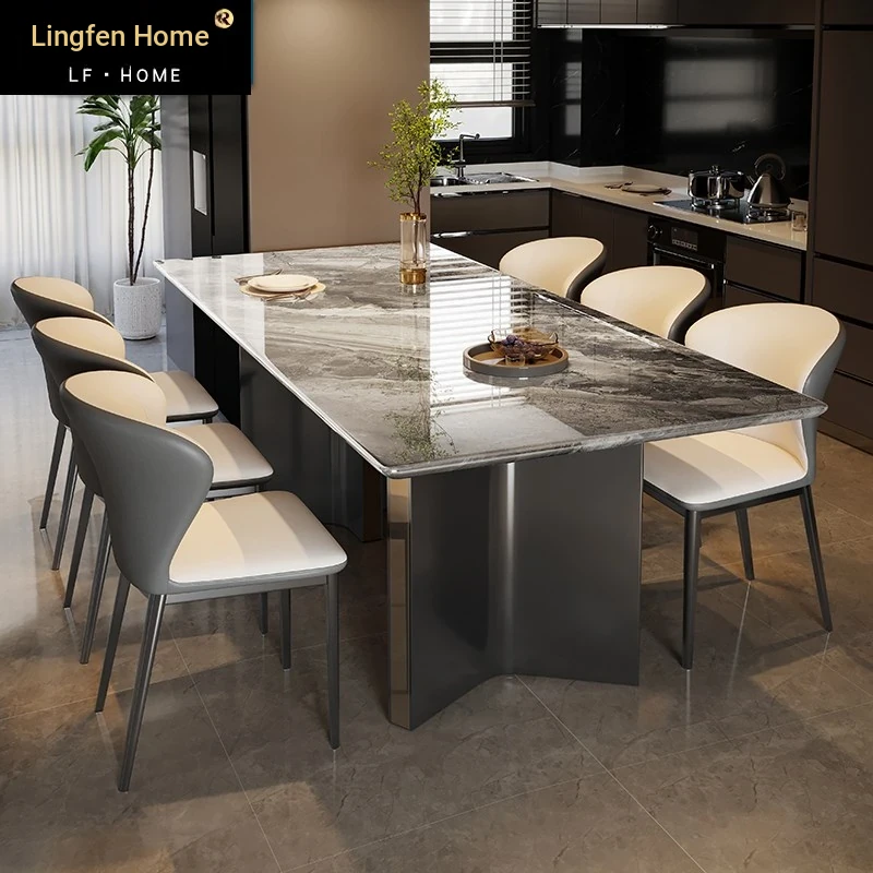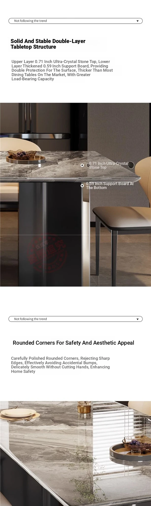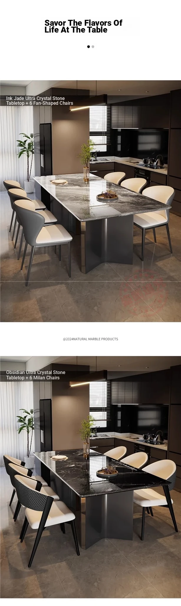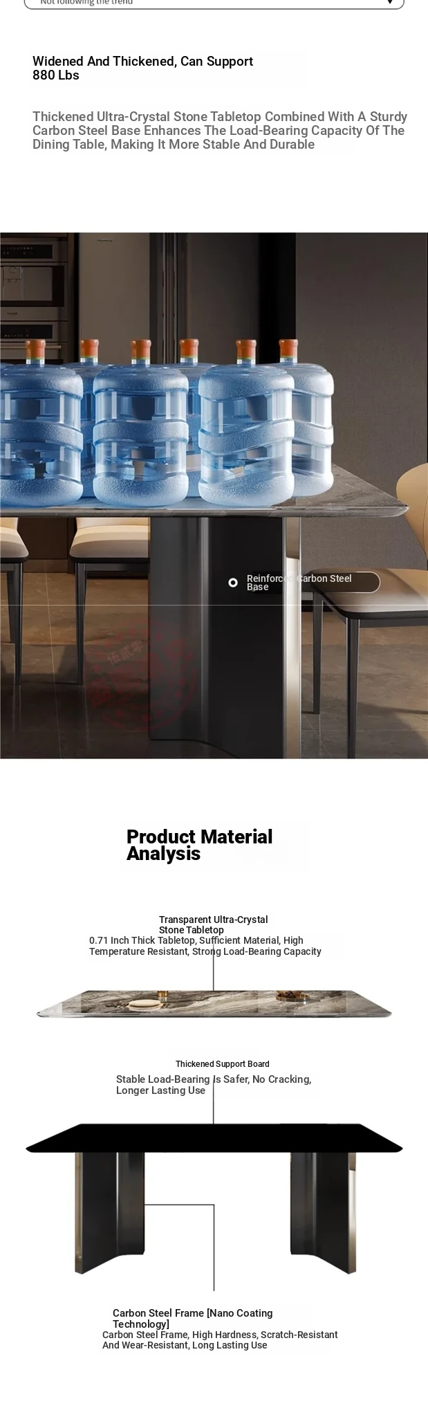 Elegant Rectangular Microcrystal Dining Table - Modern Minimalist Design for Luxurious Homes, Featuring Ultra-Crystal Stone Top for an Upscale Dining Experience