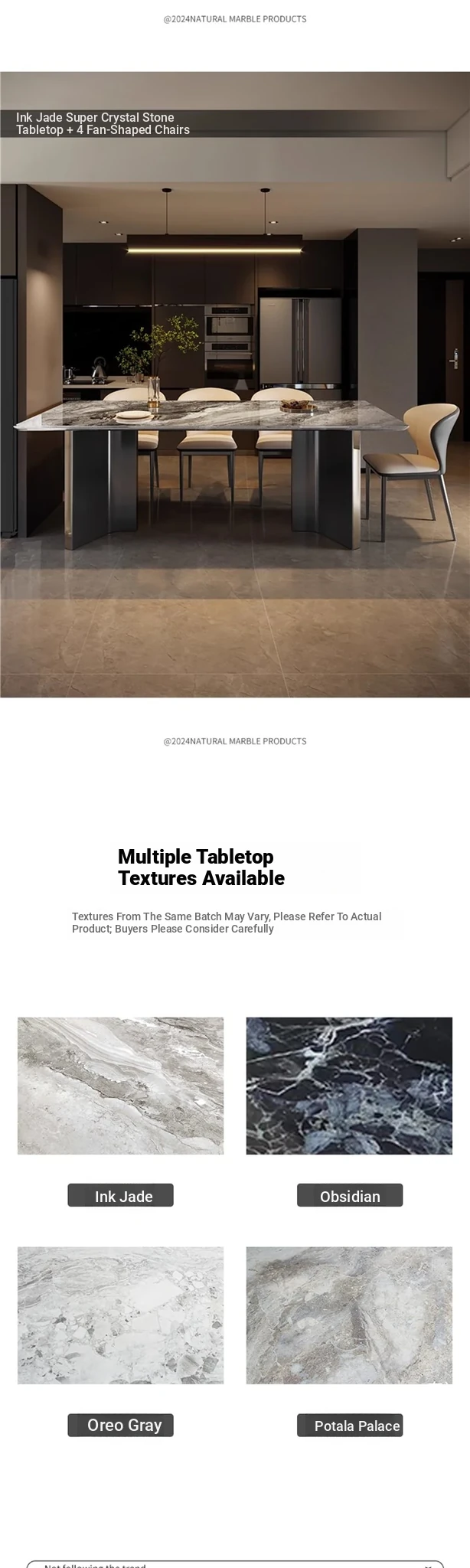 [0.71in Super Crystal Stone] C71# Rectangular Table +4 Cat Scratch Fan-shaped Chairs [Straight Edge Fillet]]