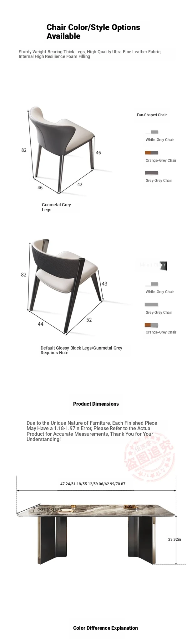 [0.71in Super Crystal Stone] C71# Rectangular Table +6 Cat Scratch Fan-shaped Chairs [Straight Edge Fillet]]