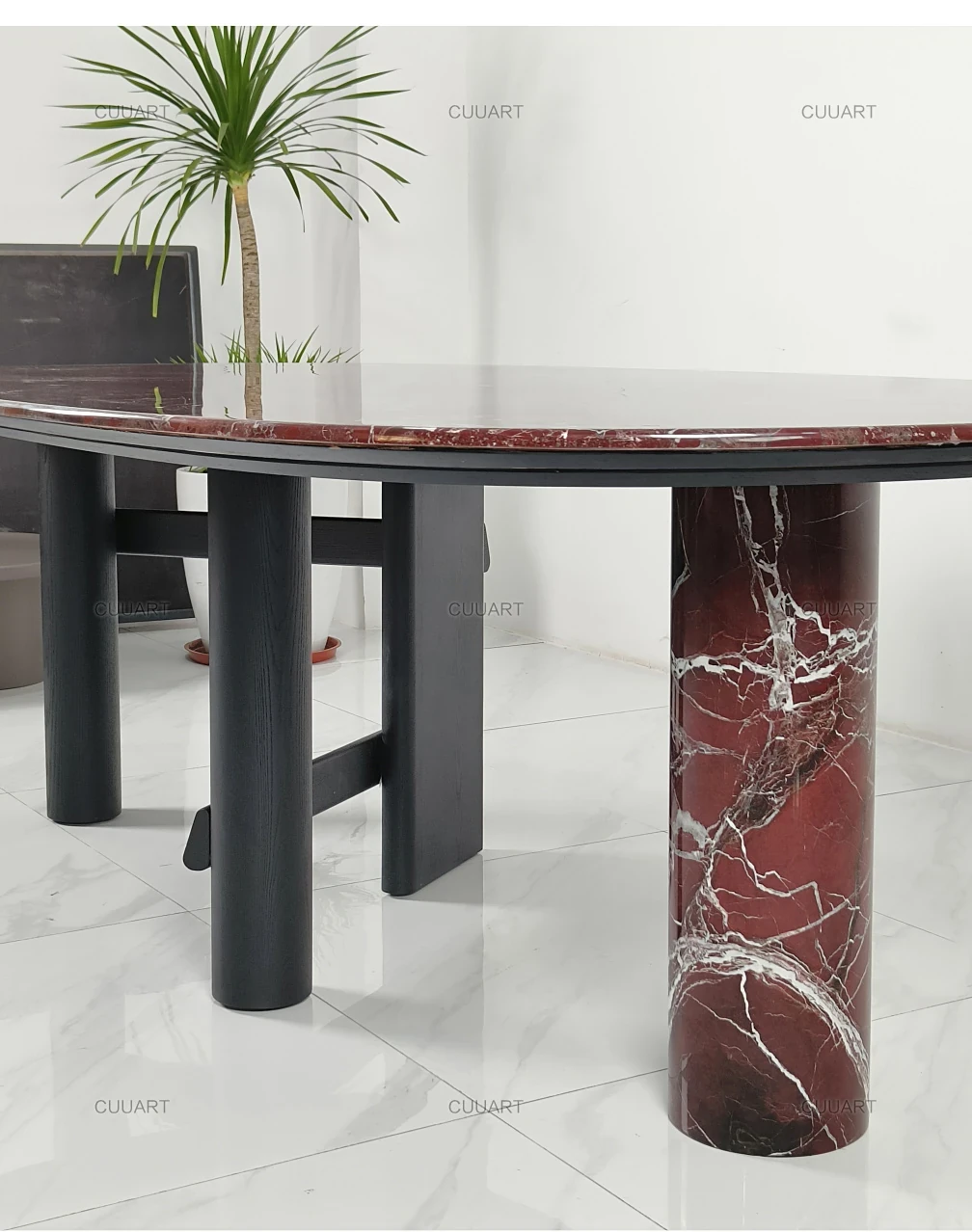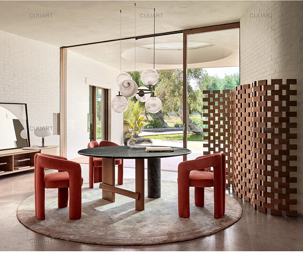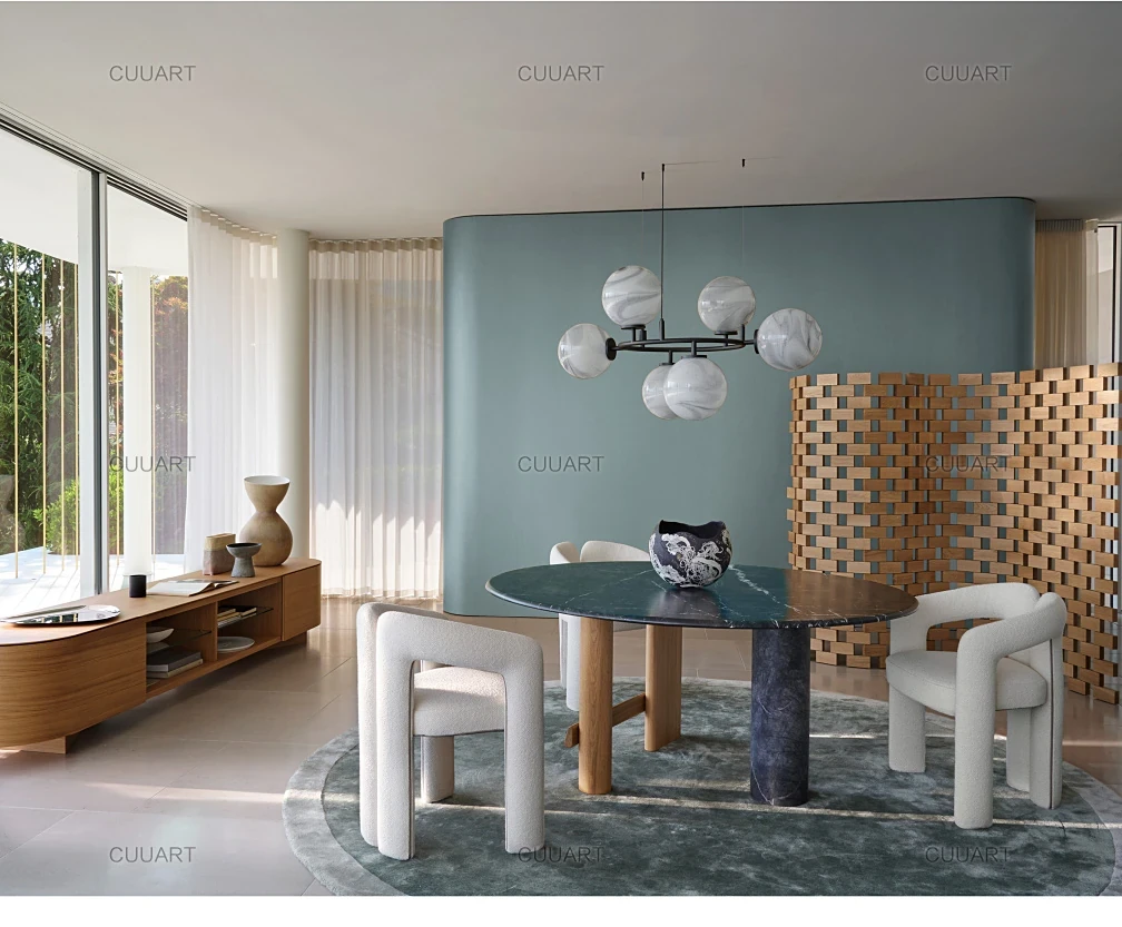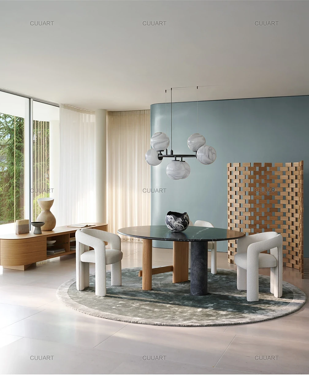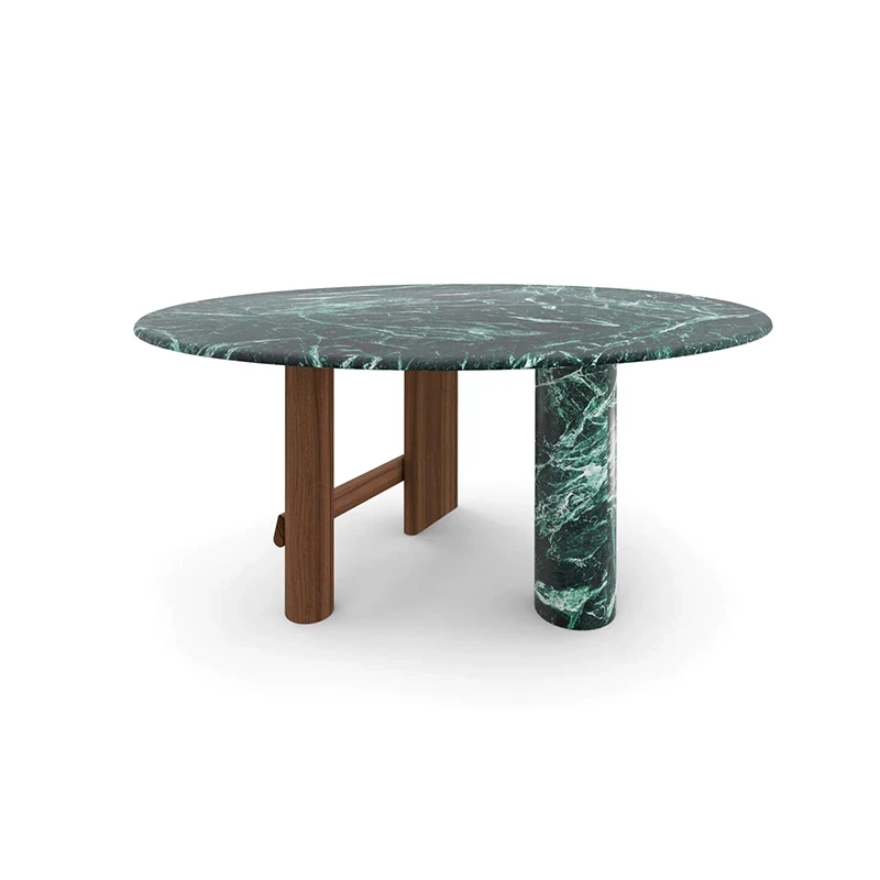 Italian Minimalist Cassina Sengu Table - Natural Marble Dining Table with Nordic Ash Wood - Round Design for Elegant Dining Spaces