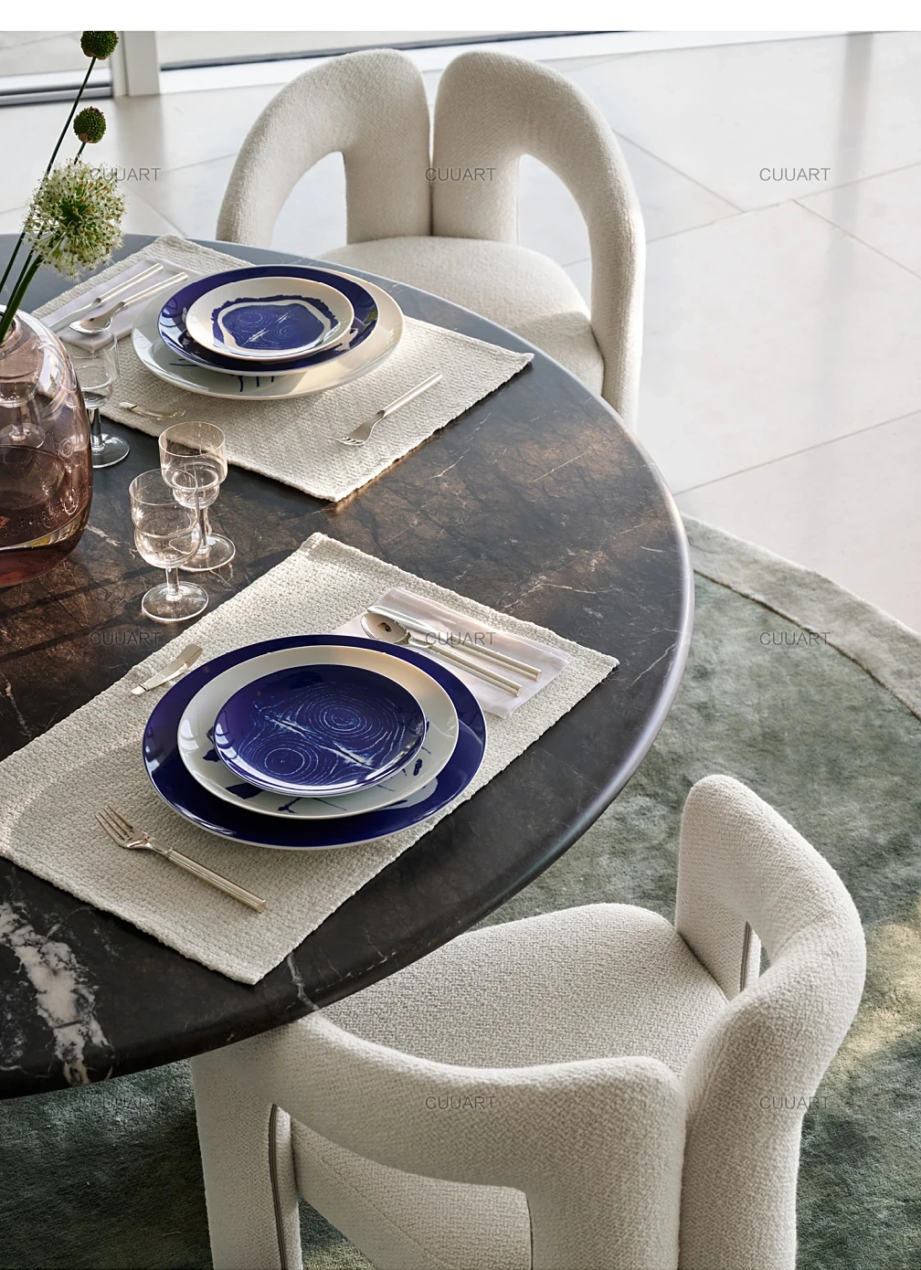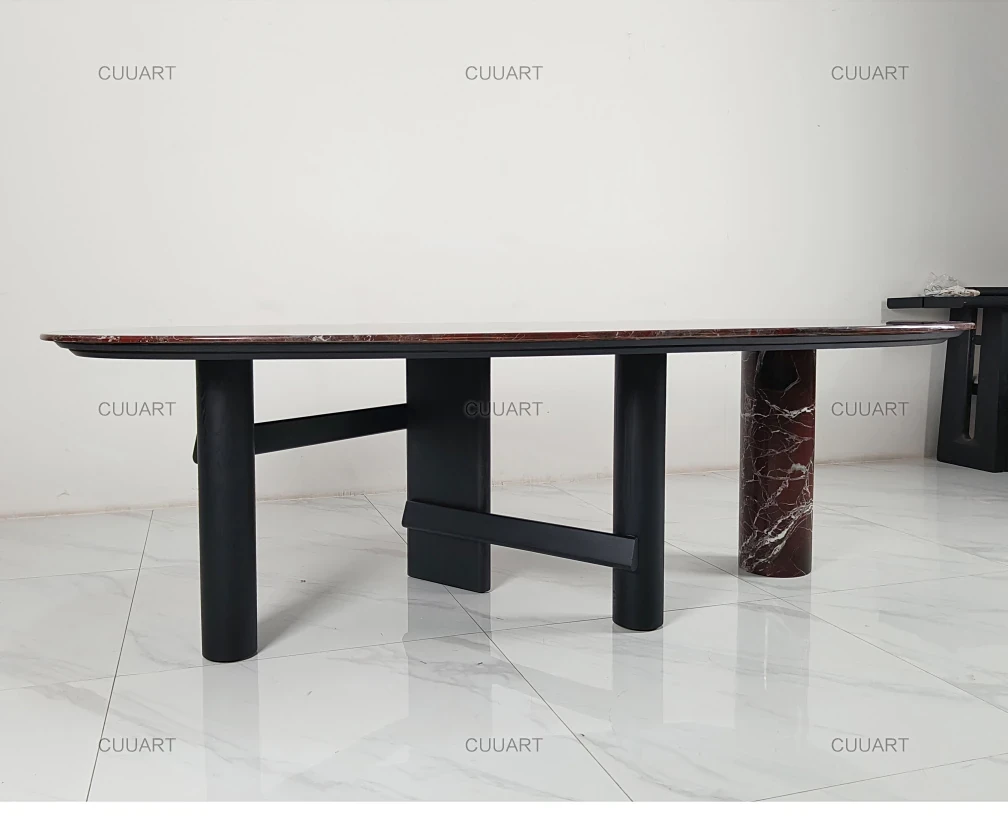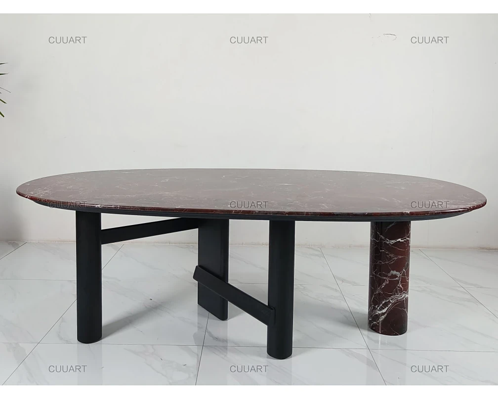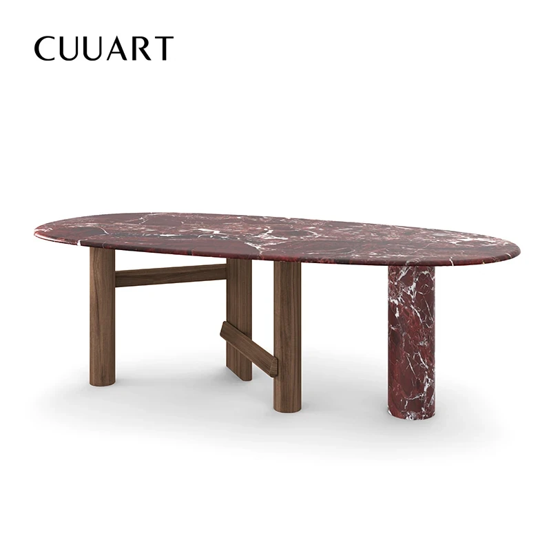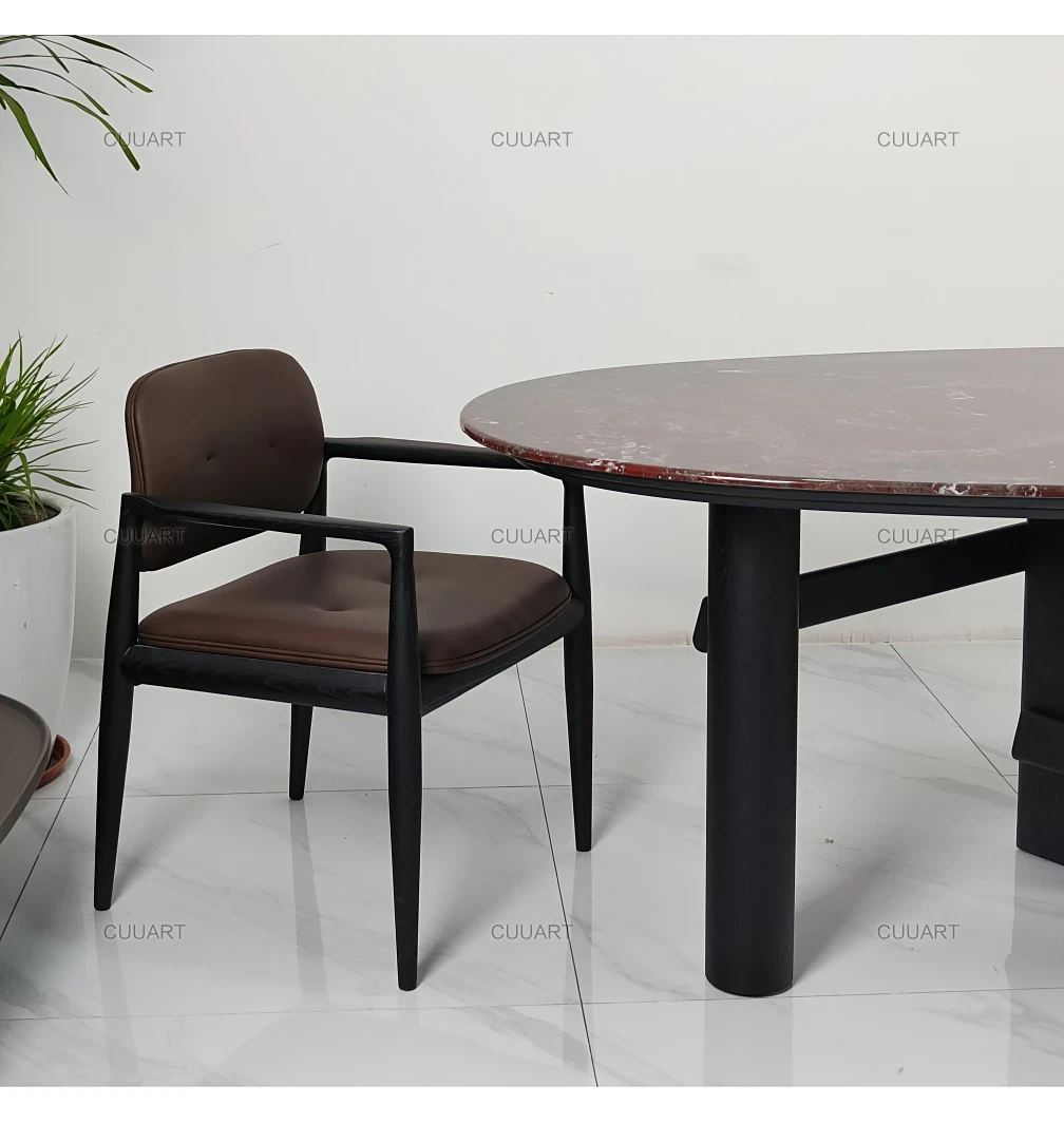 Italian Minimalist Cassina Sengu Table - Natural Marble Dining Table with Nordic Ash Wood - Round Design for Elegant Dining Spaces