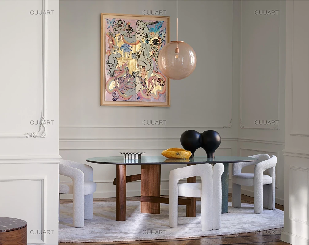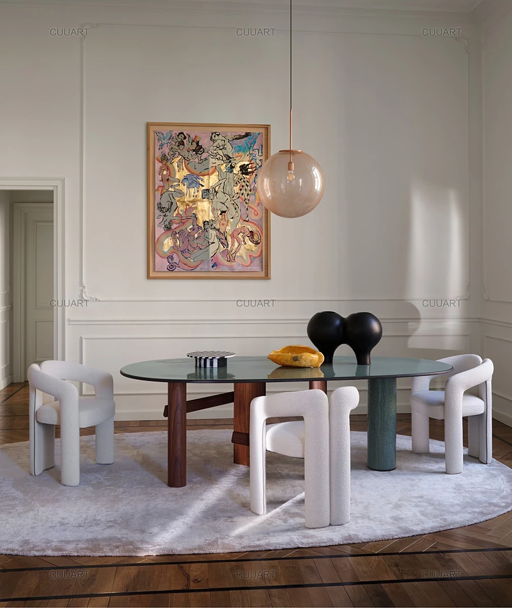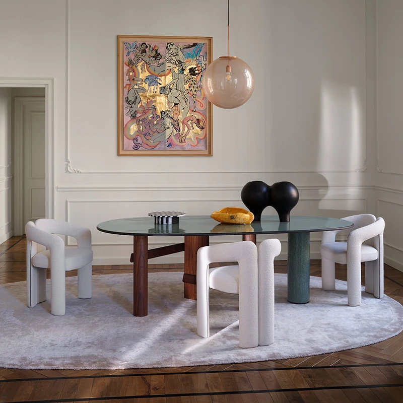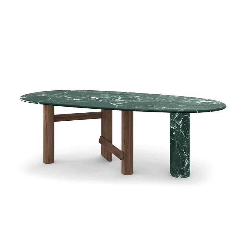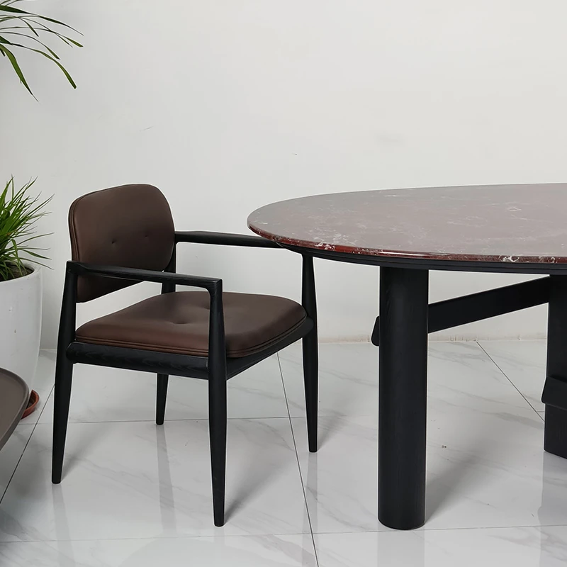 Italian Minimalist Cassina Sengu Table - Natural Marble Dining Table with Nordic Ash Wood - Round Design for Elegant Dining Spaces