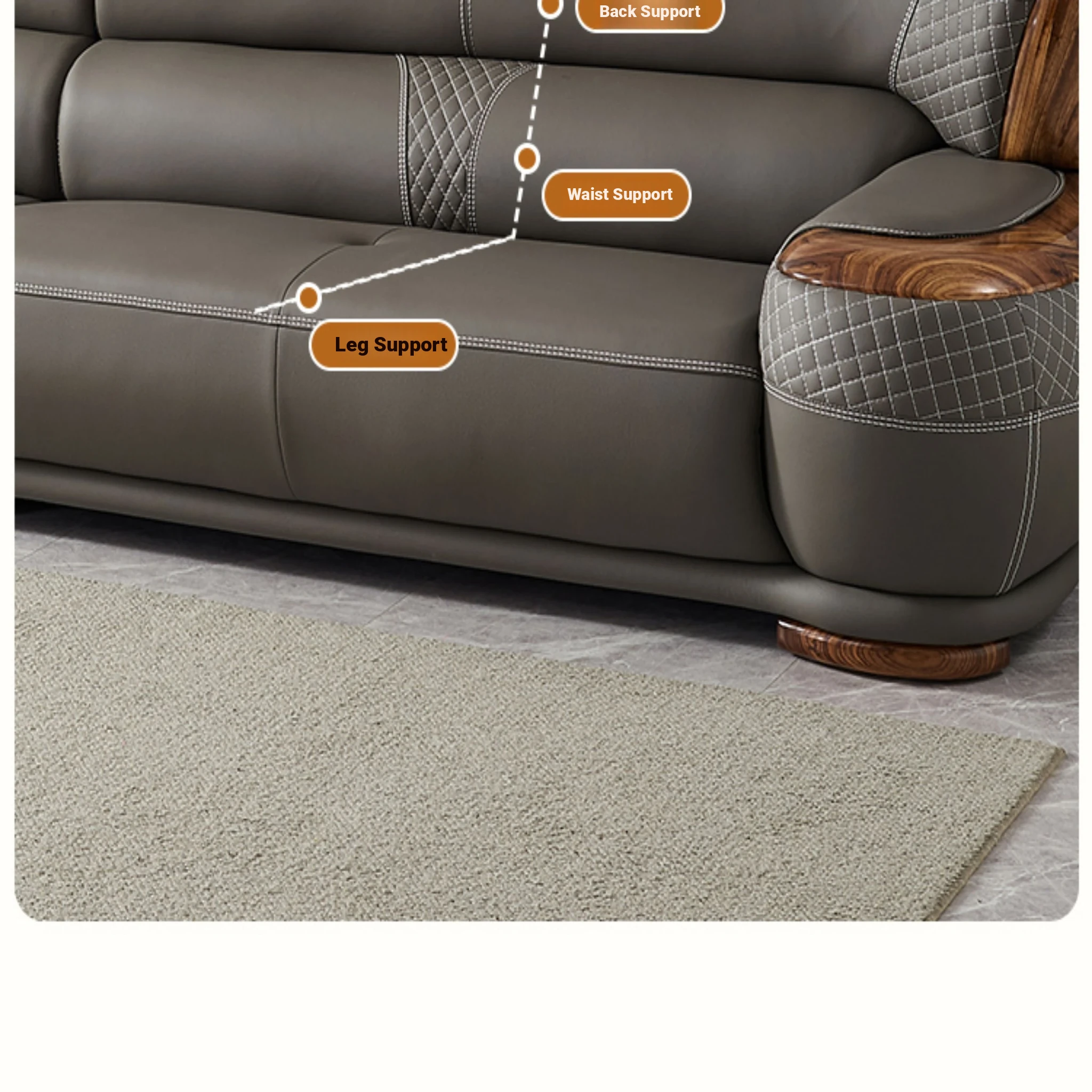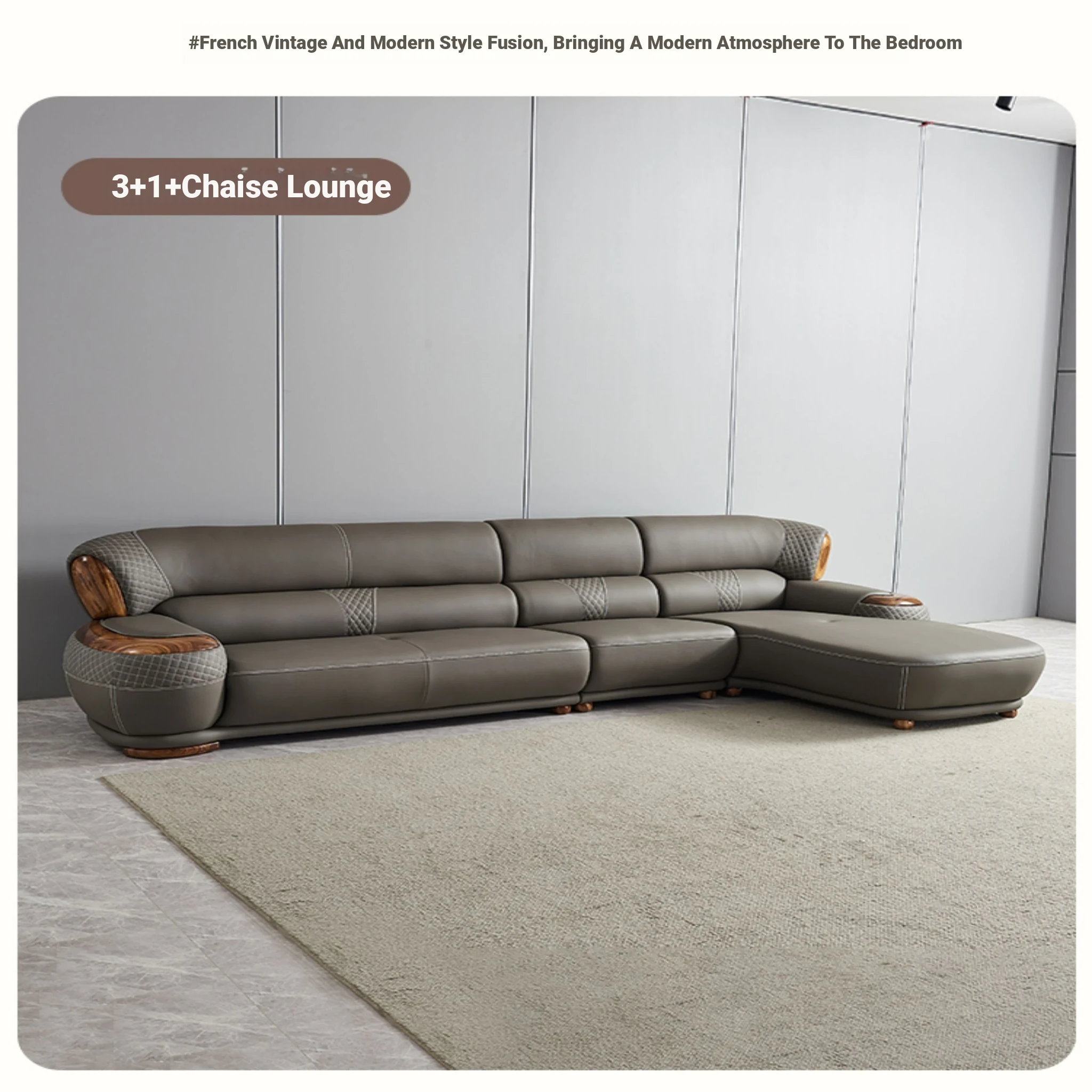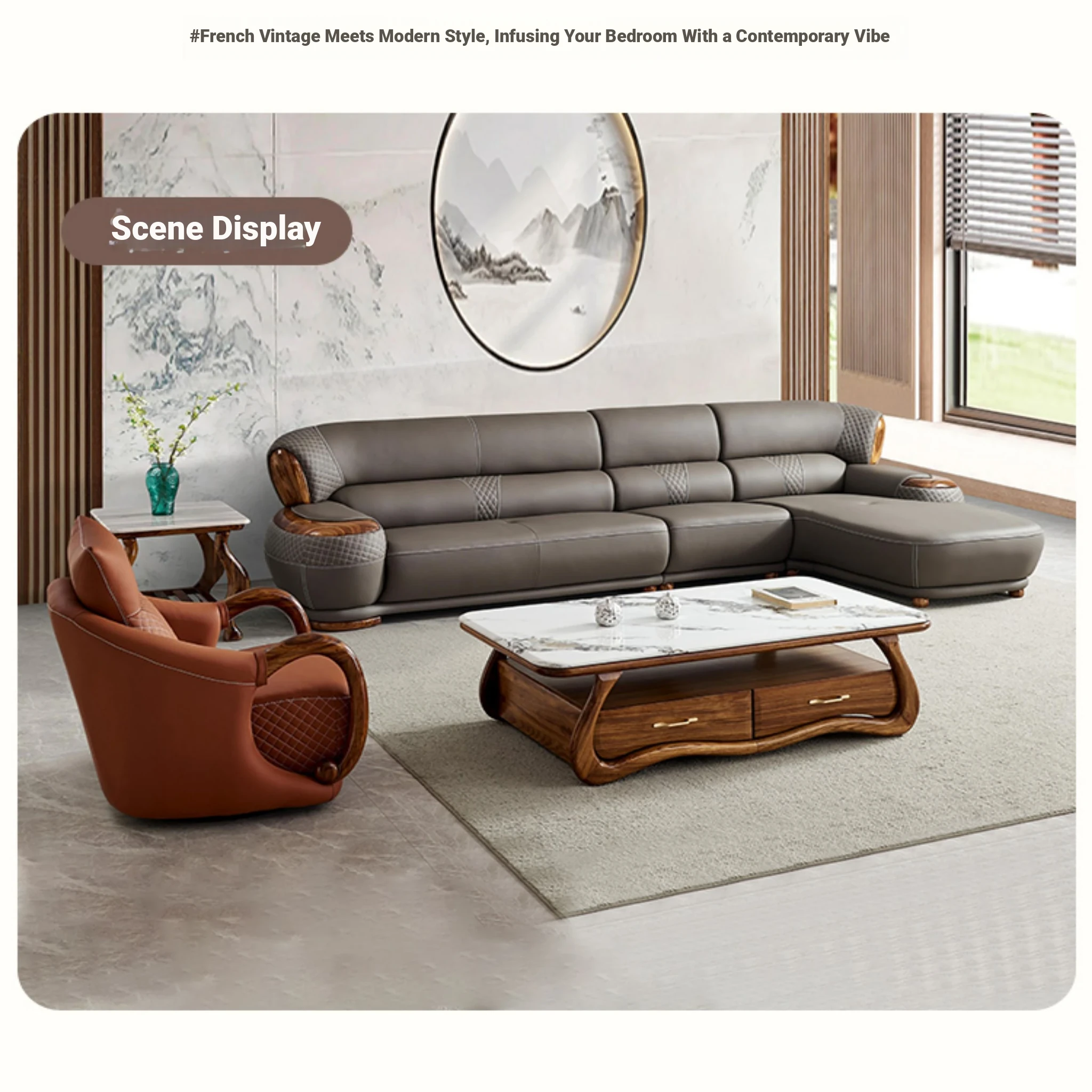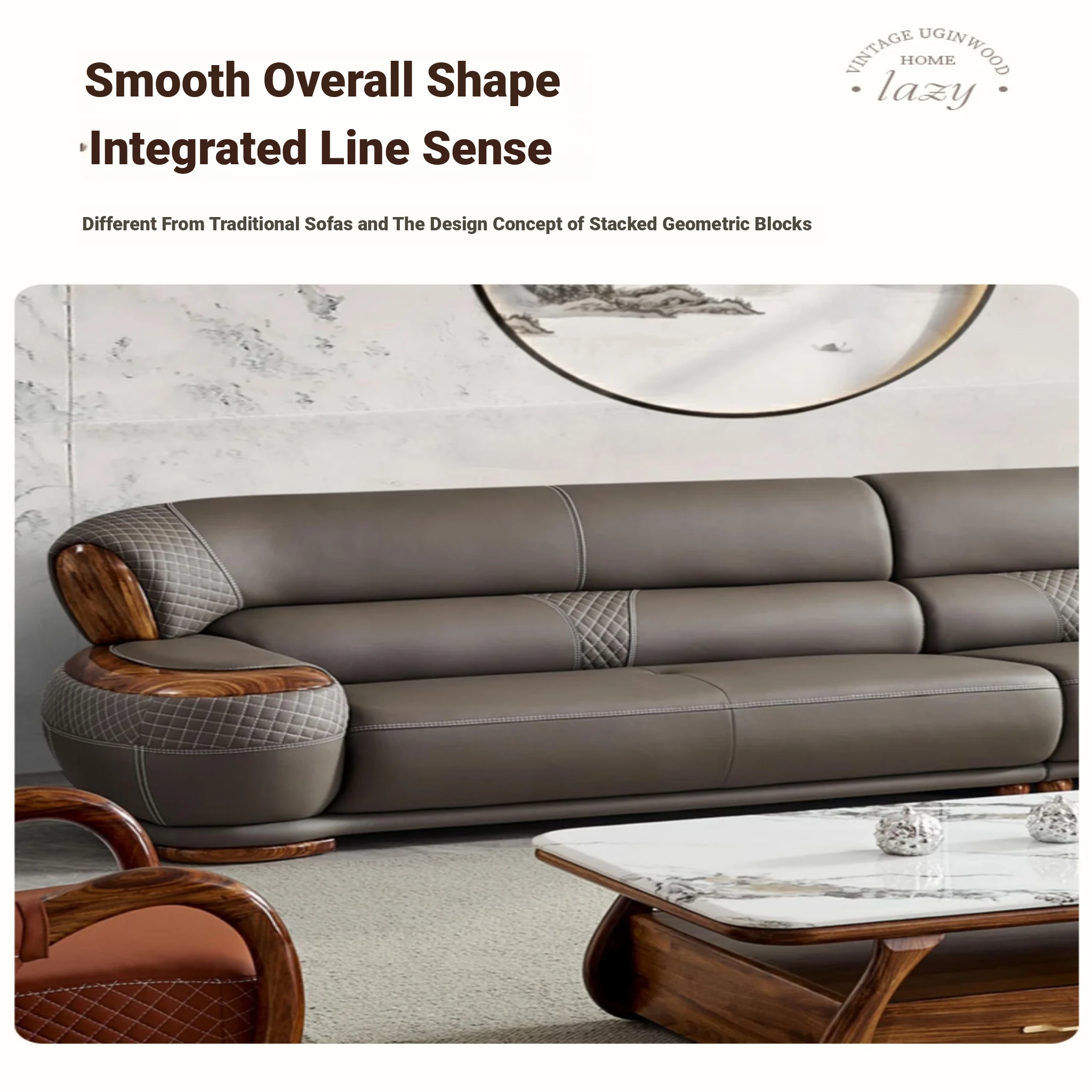 Luxurious New Chinese Style Black Walnut Leather Sofa - Premium Top Grain Cowhide for Spacious Living Rooms, Elegant European Solid Wood & Leather Design