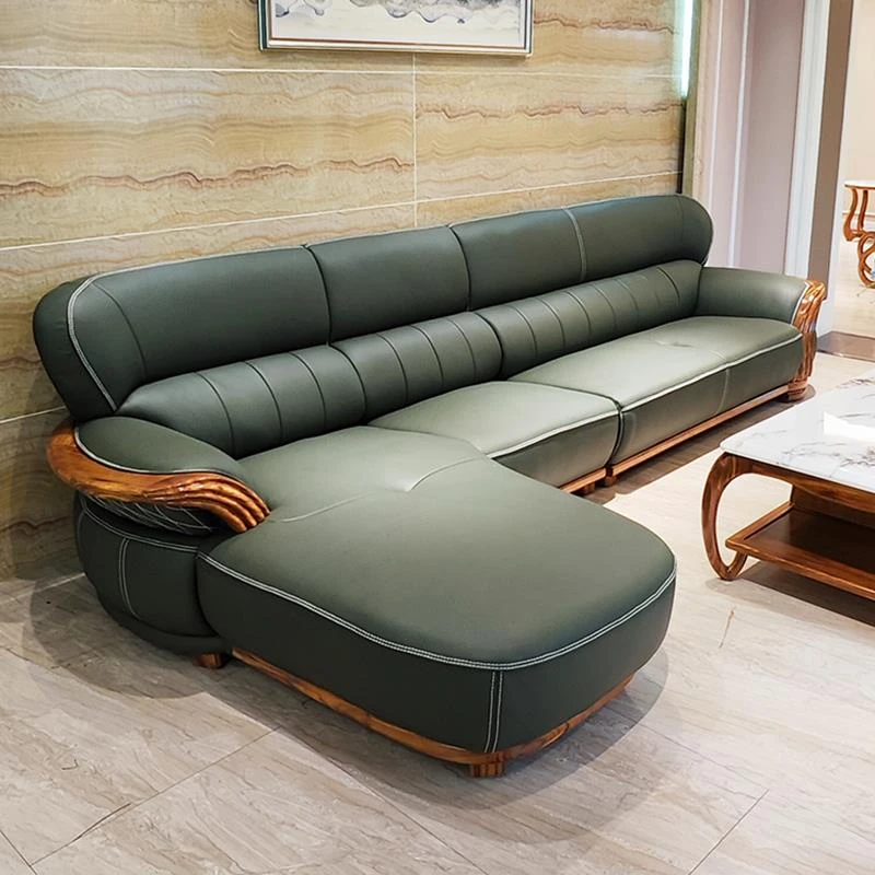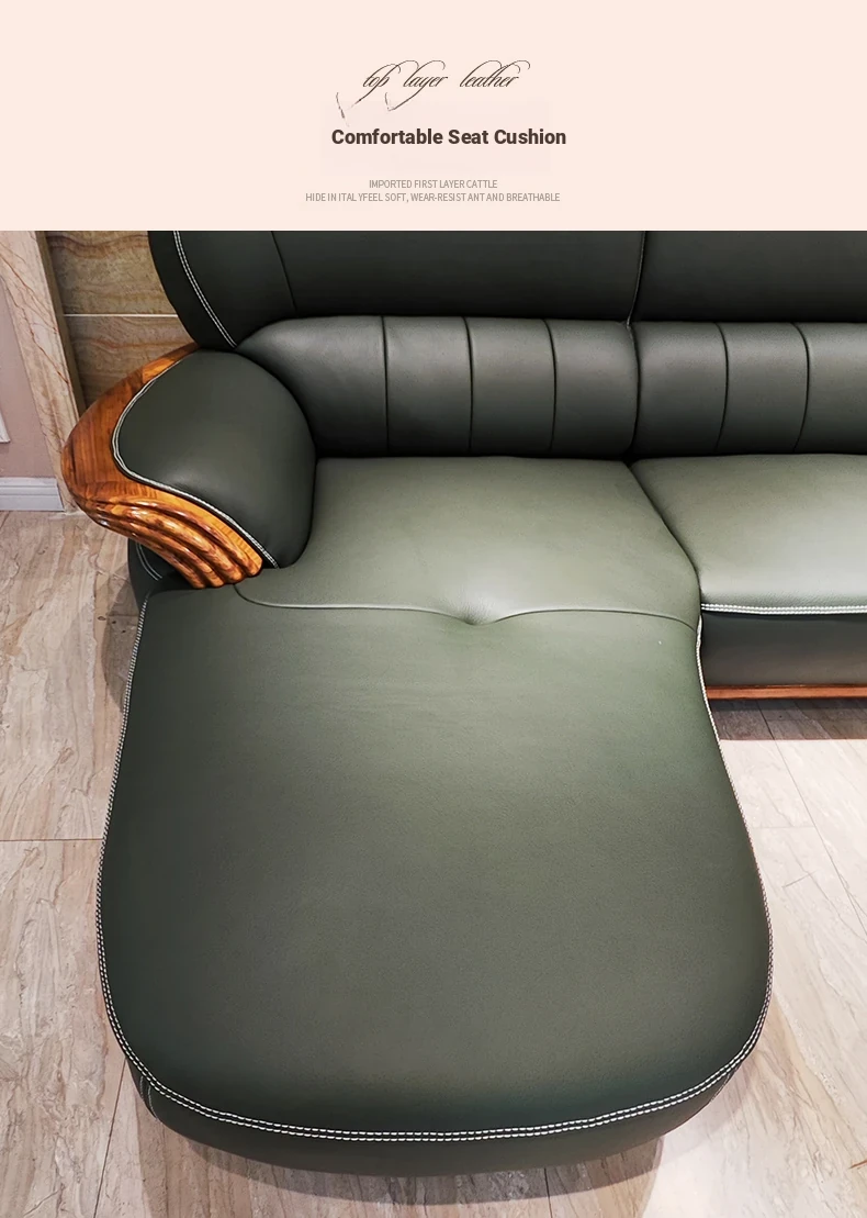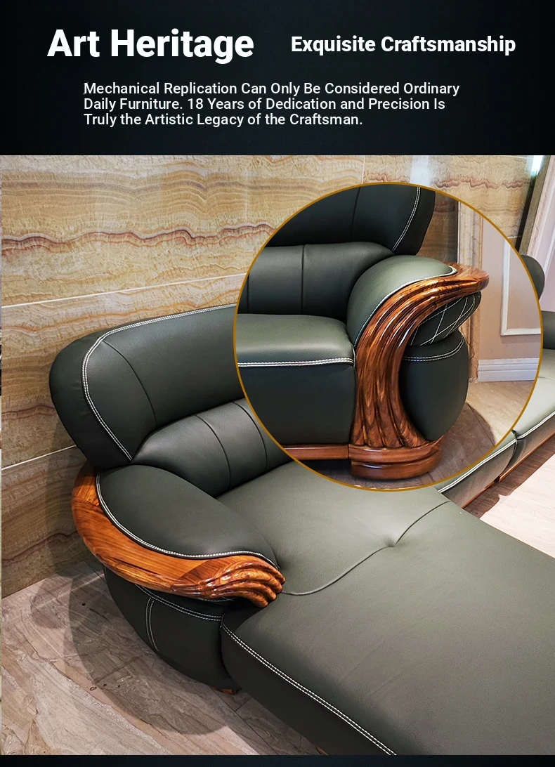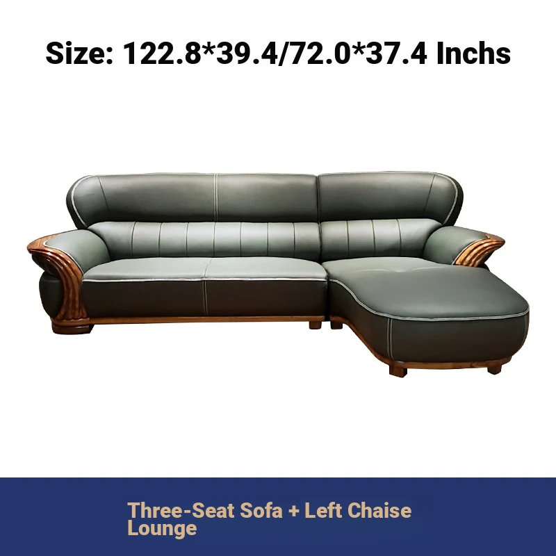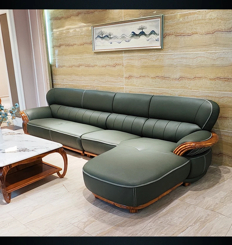 Luxury Chinese-style Corner Sofa in Blackwood – Premium Full-Grain Leather, Perfect for Any Living Room Size, Elegant Solid Wood Combination for a Touch of Sophistication
