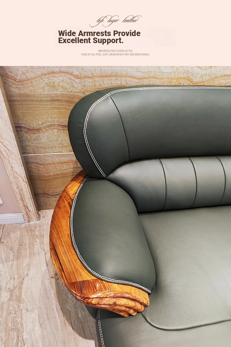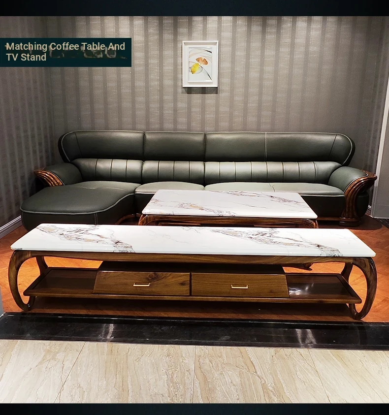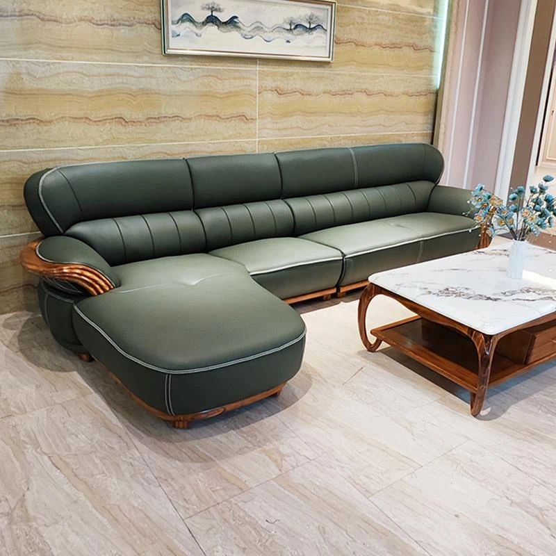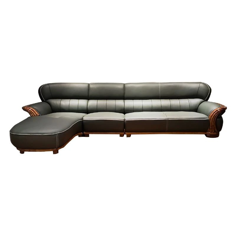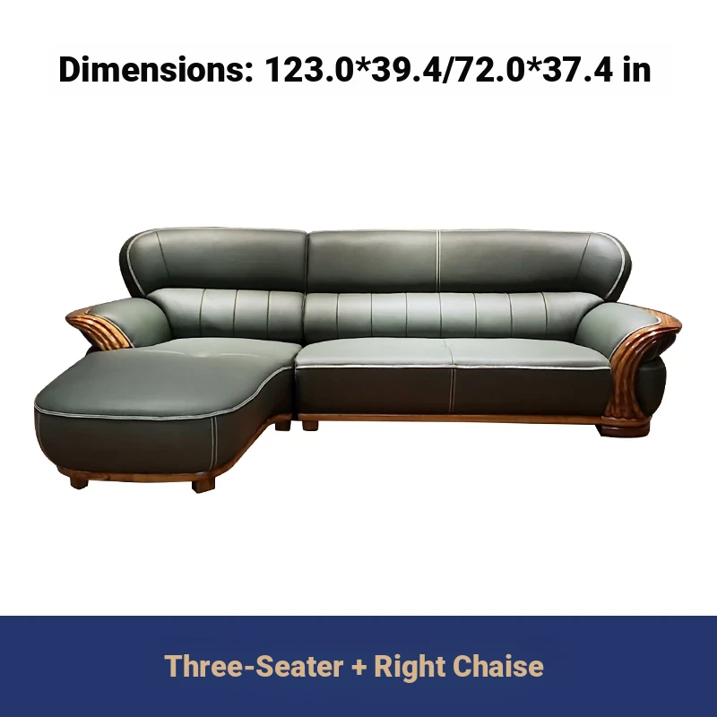 Luxury Chinese-style Corner Sofa in Blackwood – Premium Full-Grain Leather, Perfect for Any Living Room Size, Elegant Solid Wood Combination for a Touch of Sophistication