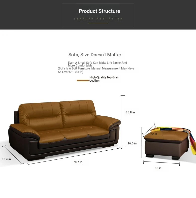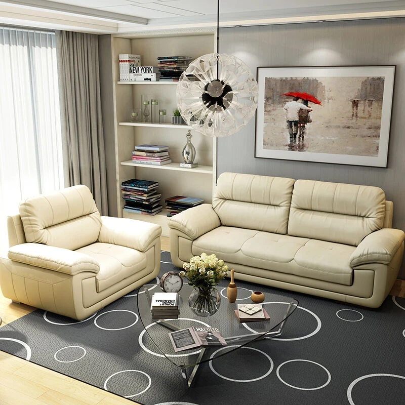 Luxury Genuine Leather Sofa Set for Small Living Rooms - Creative European and Italian Design, Premium Quality Top Grain Cowhide Office Sofa