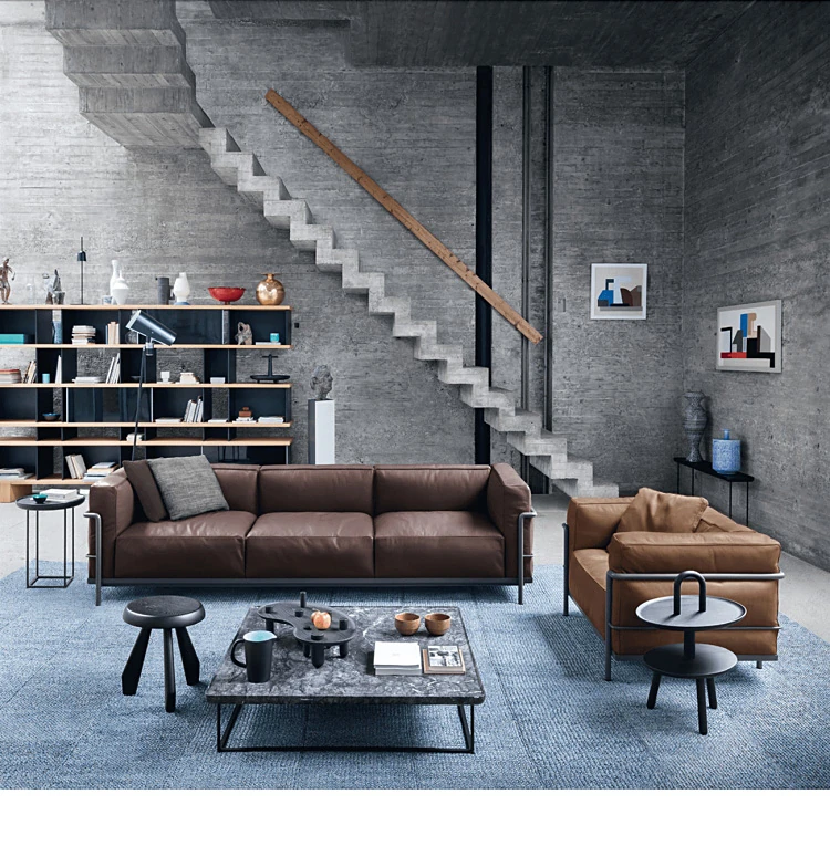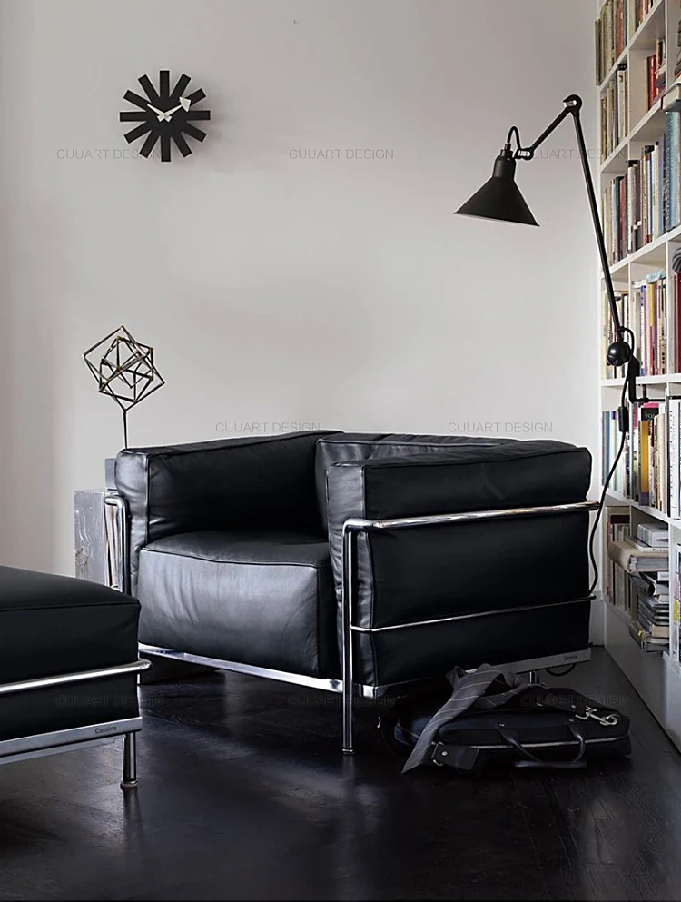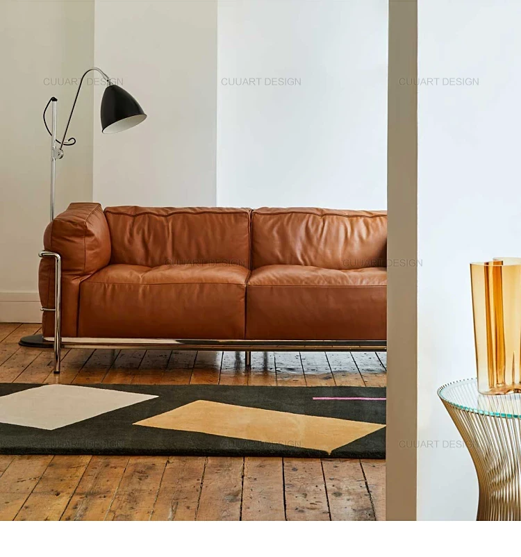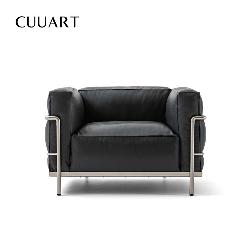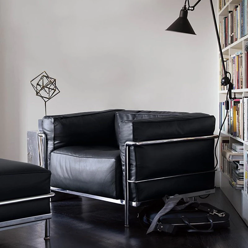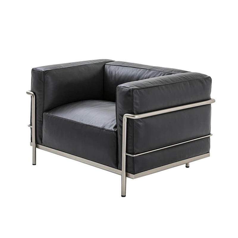 Luxury Leather Sofa - Italian Minimalist Design, Cassina Corbusier LC3 - Chic Faux Leather for Modern Living Rooms and Offices