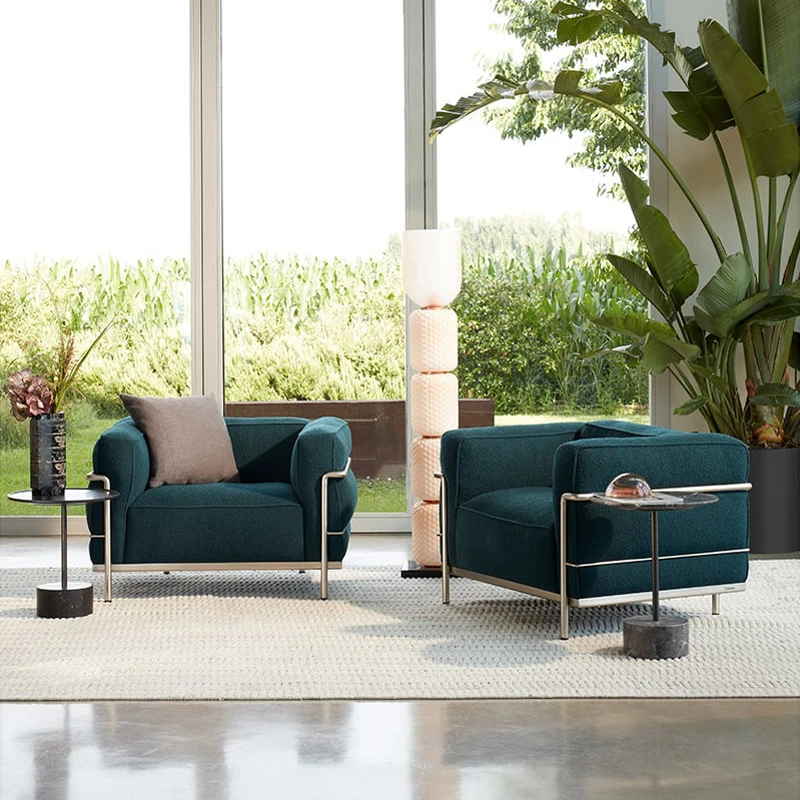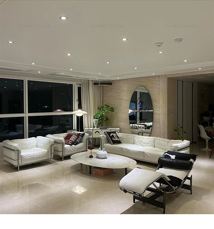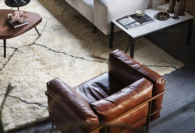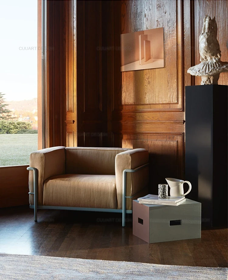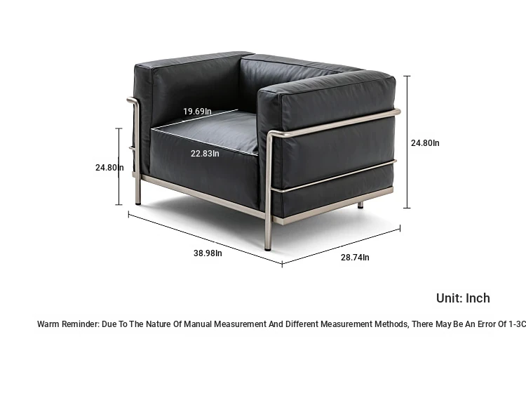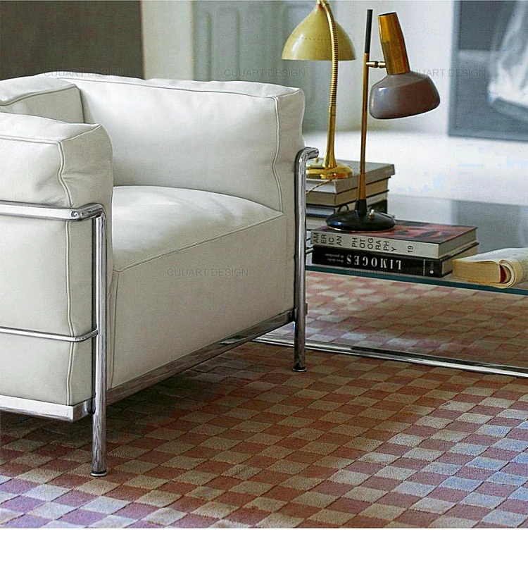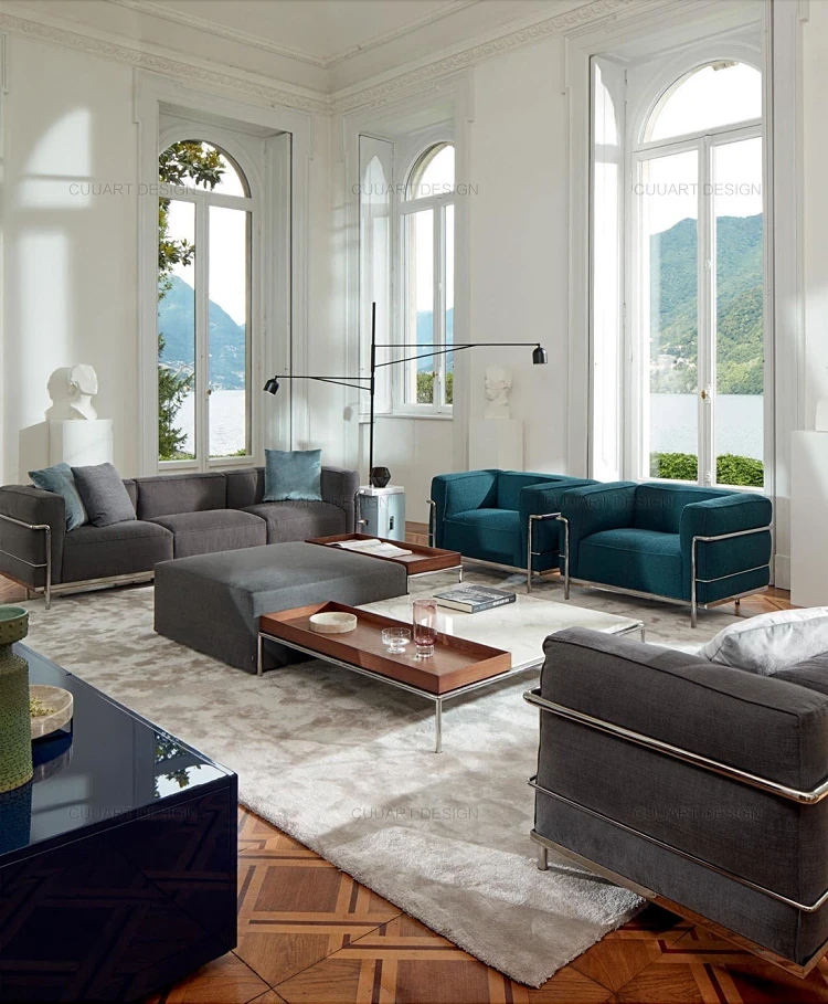 Luxury Leather Sofa - Italian Minimalist Design, Cassina Corbusier LC3 - Chic Faux Leather for Modern Living Rooms and Offices