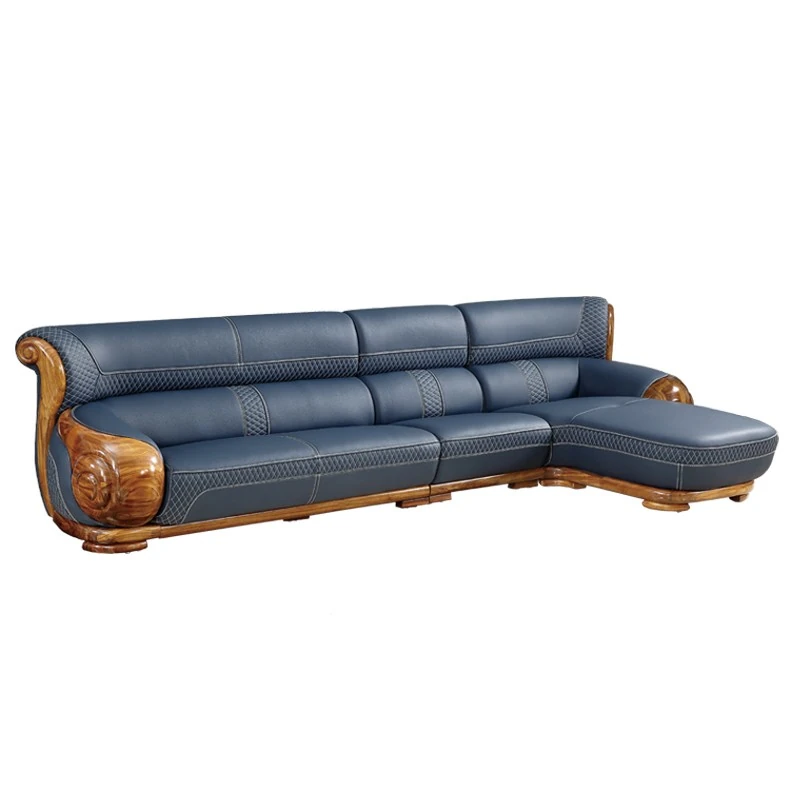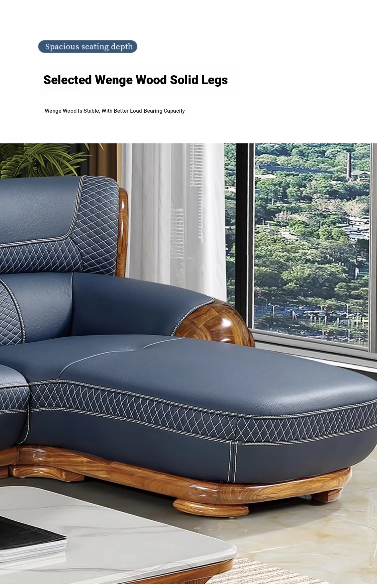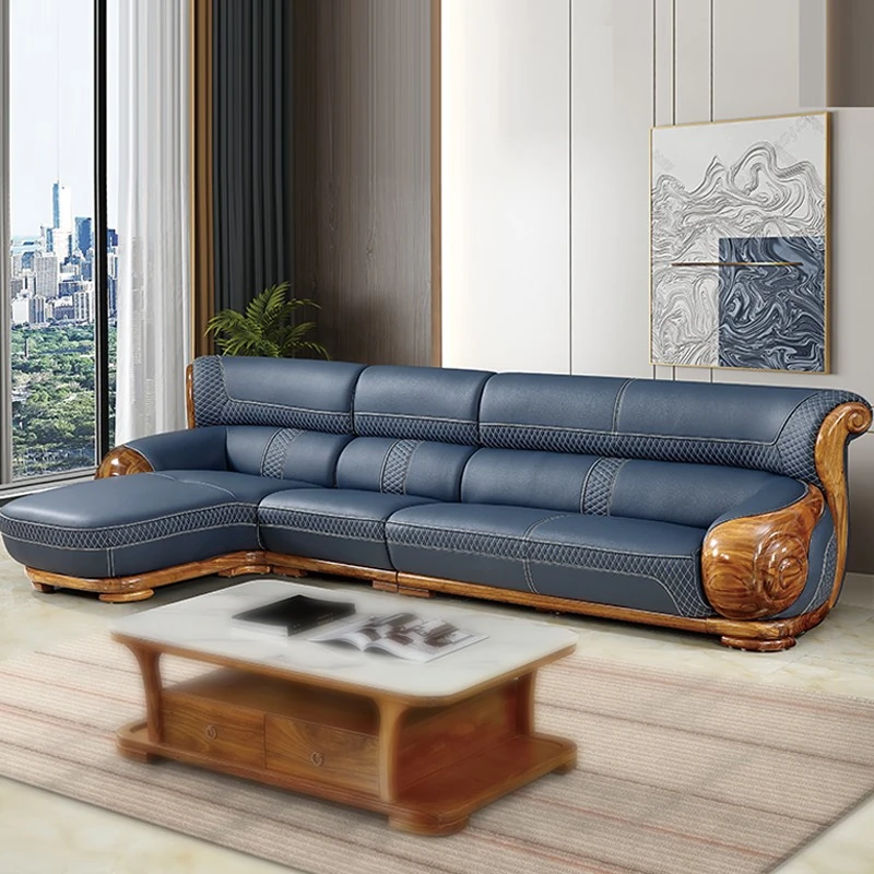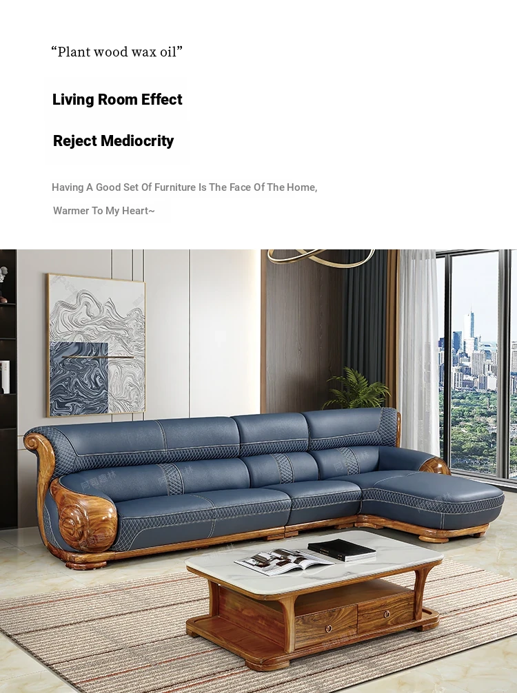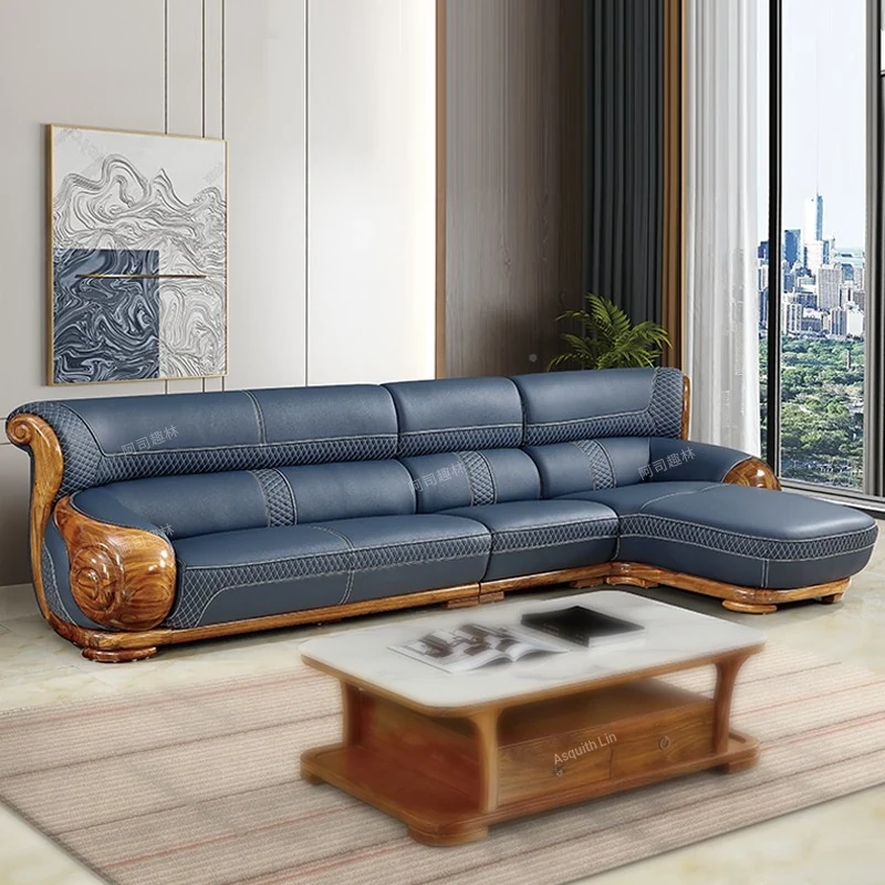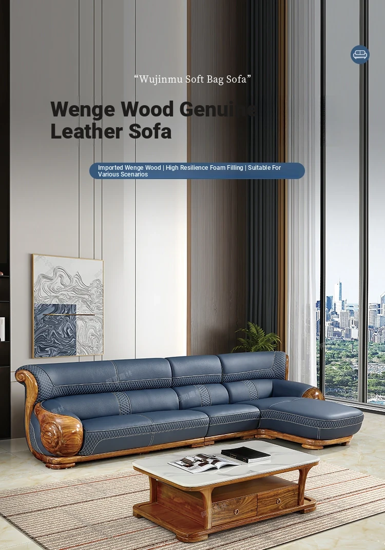 Luxury Modern Chinese Style Ukin Wood and Genuine Leather Corner Sofa - High-End Villa Living Room Couch with Top Layer Cowhide Shell Design