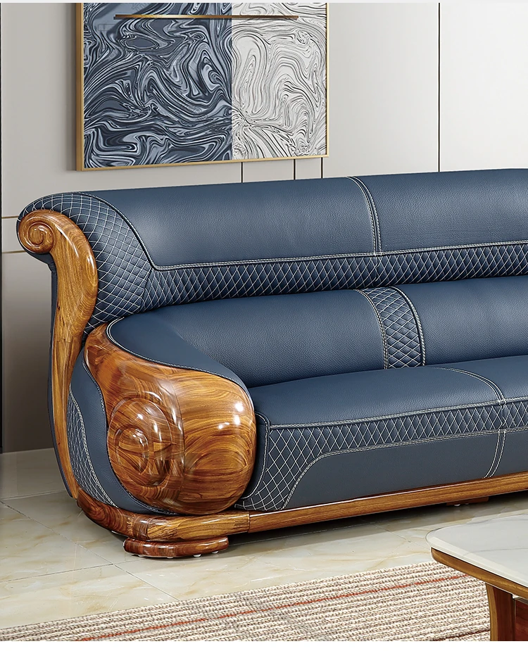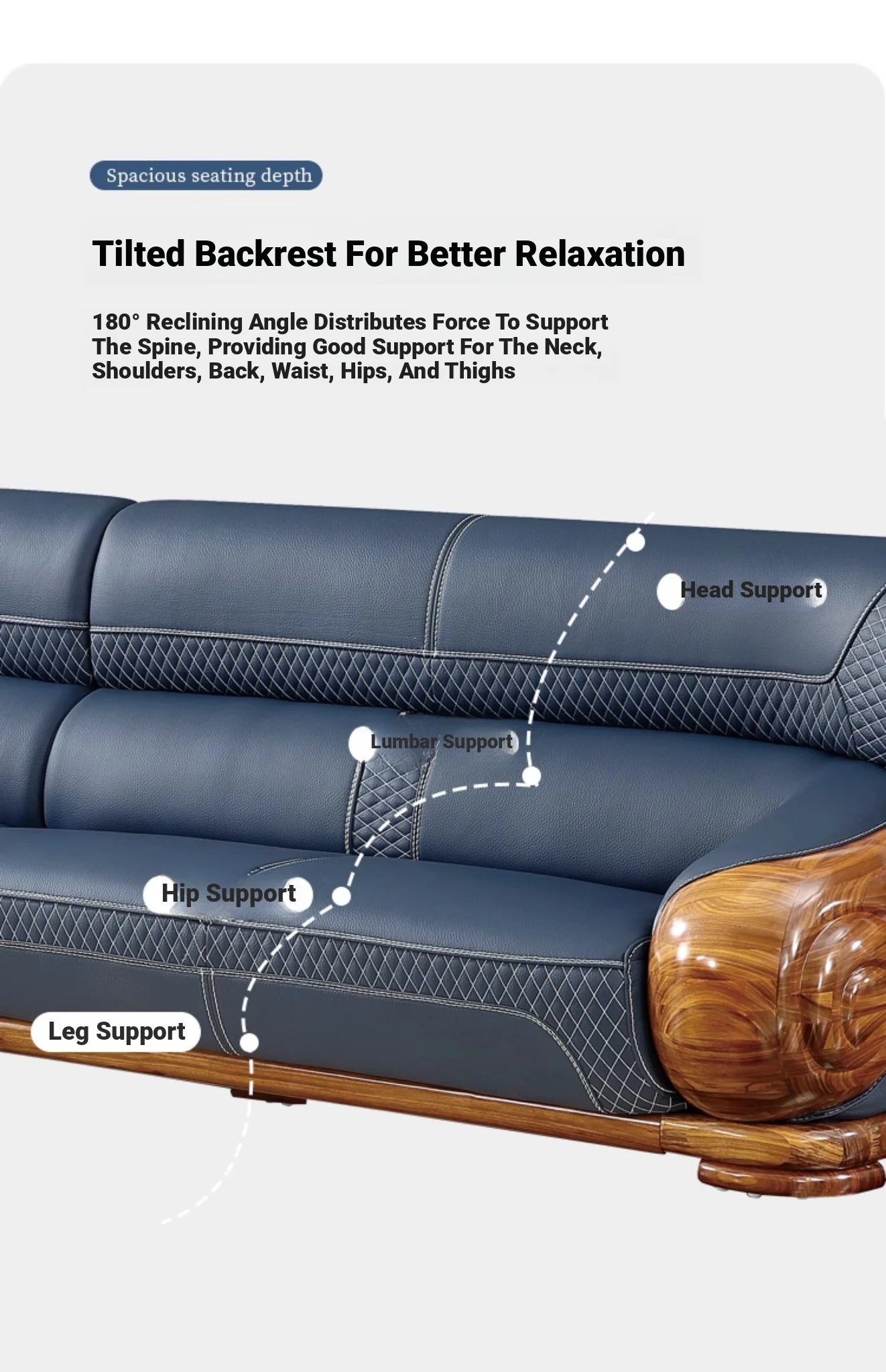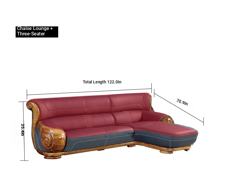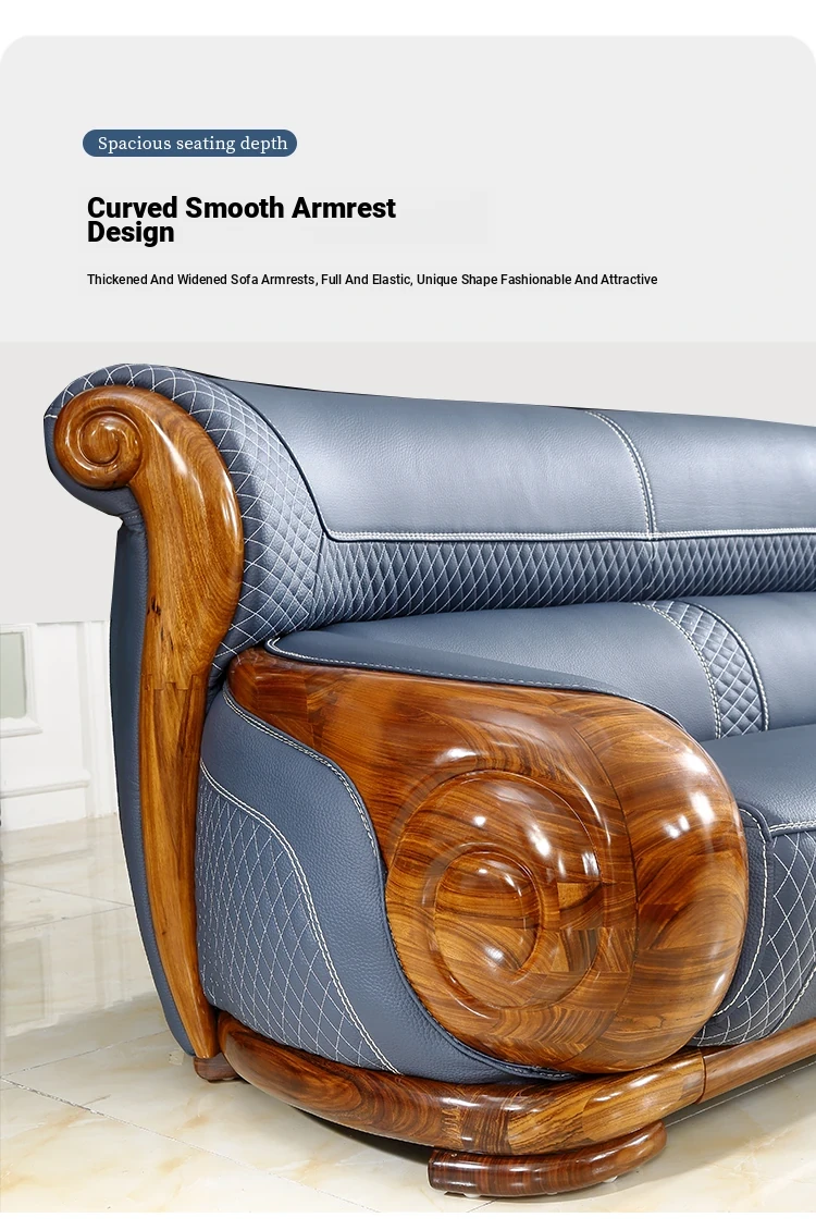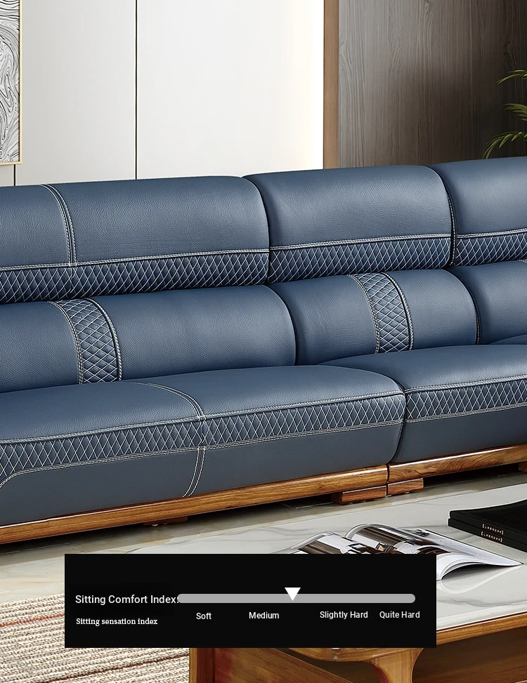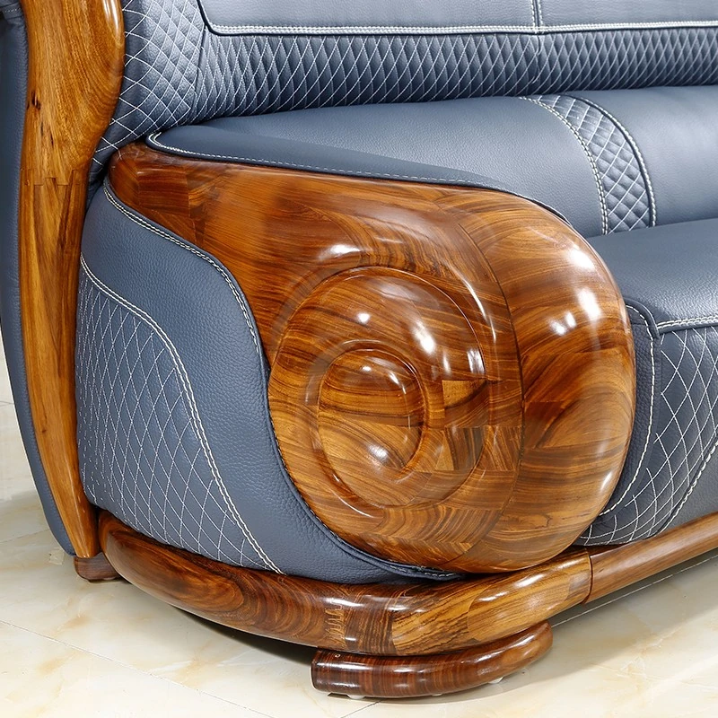 Luxury Modern Chinese Style Ukin Wood and Genuine Leather Corner Sofa - High-End Villa Living Room Couch with Top Layer Cowhide Shell Design