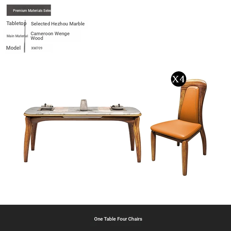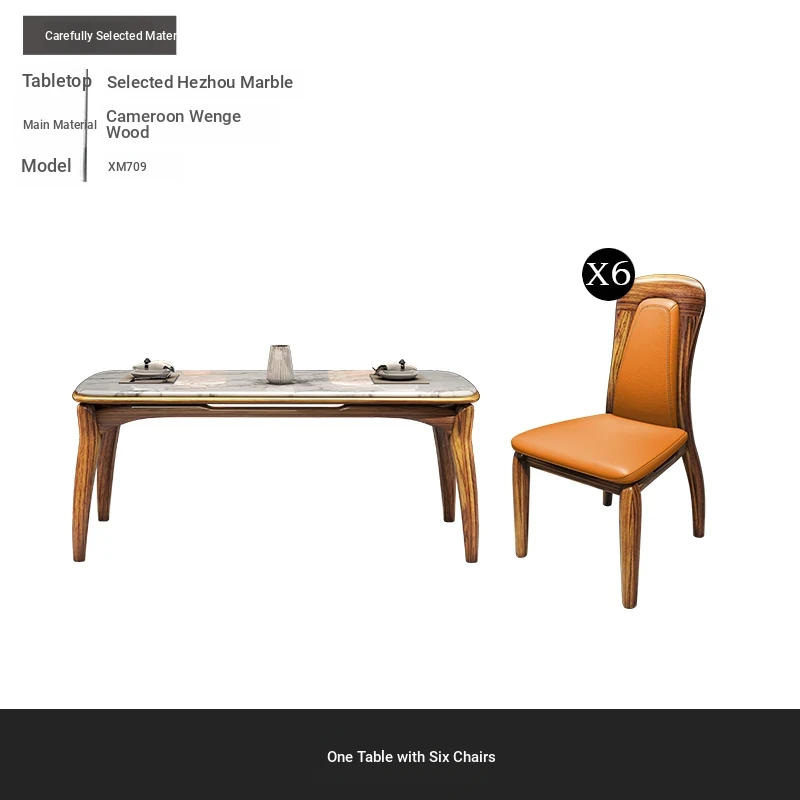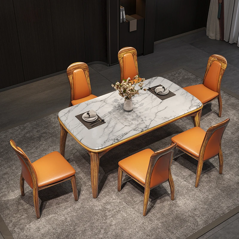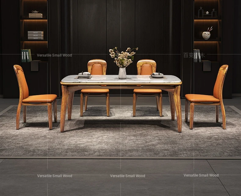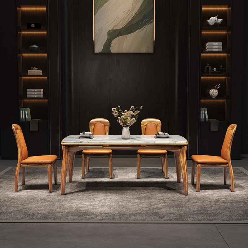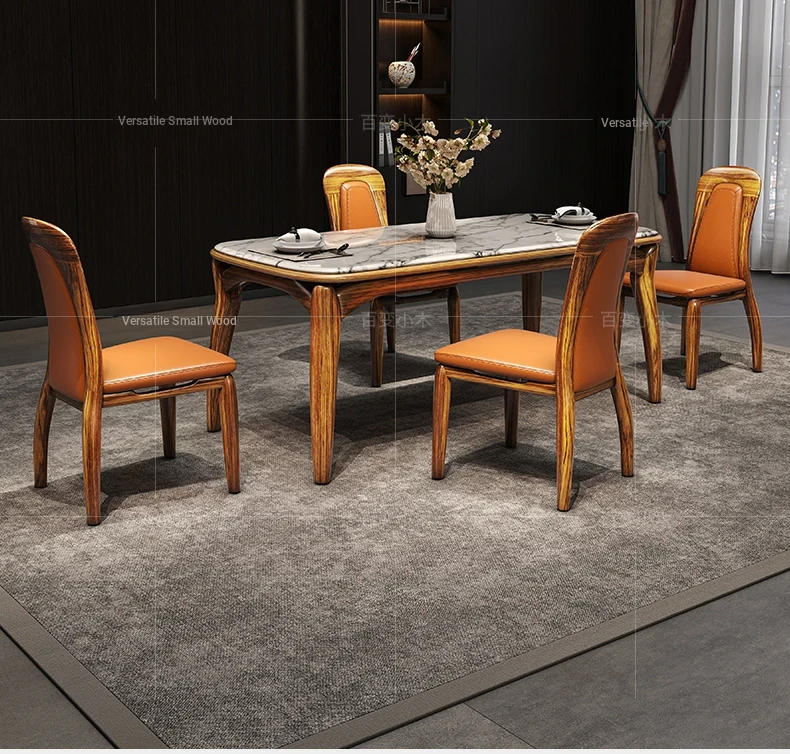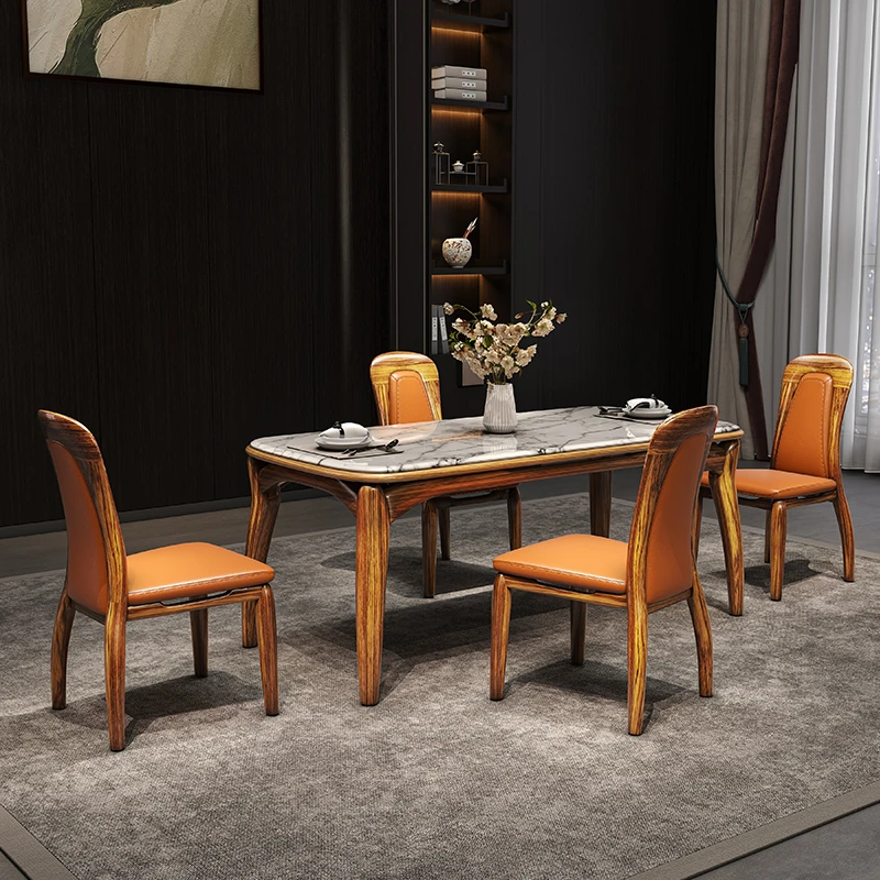 Modern Chinese Style Blackwood Dining Table and Chair Set - Simple Rectangular Solid Wood Dining Table with Marble Top for Home Use