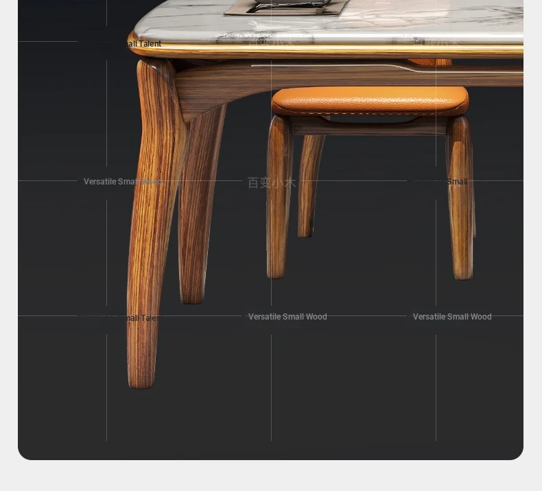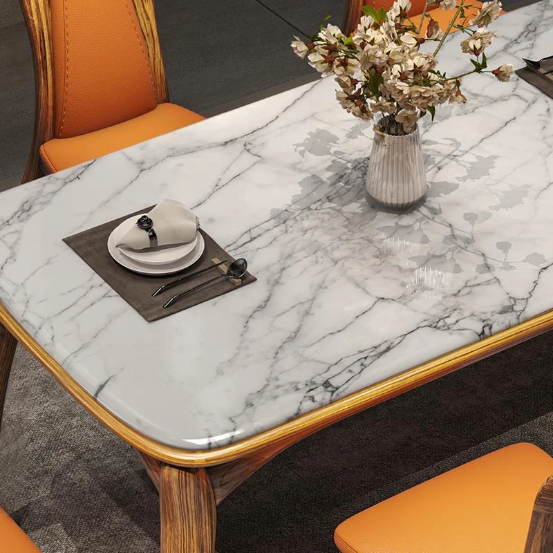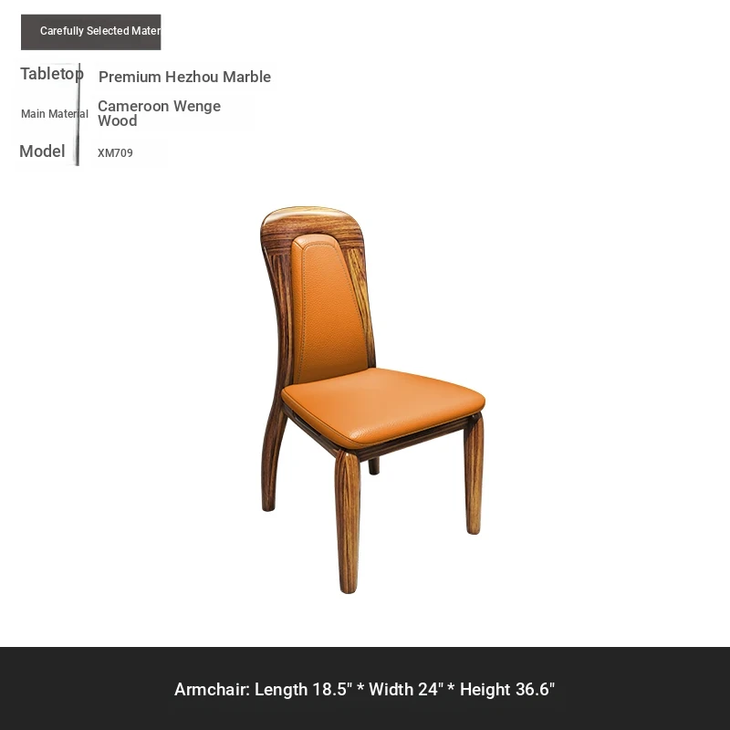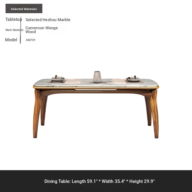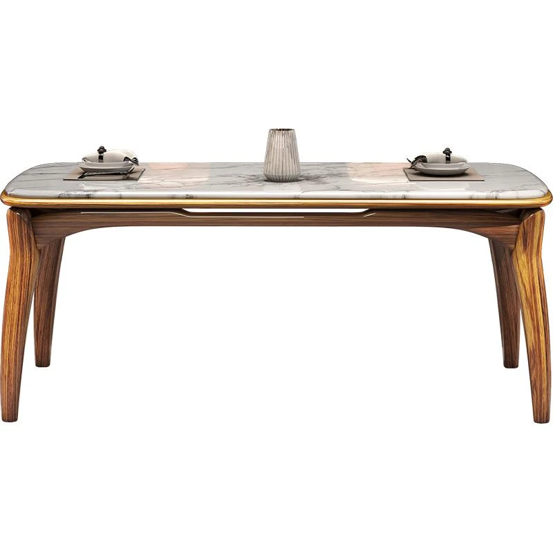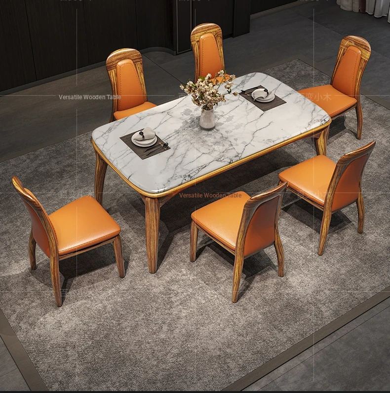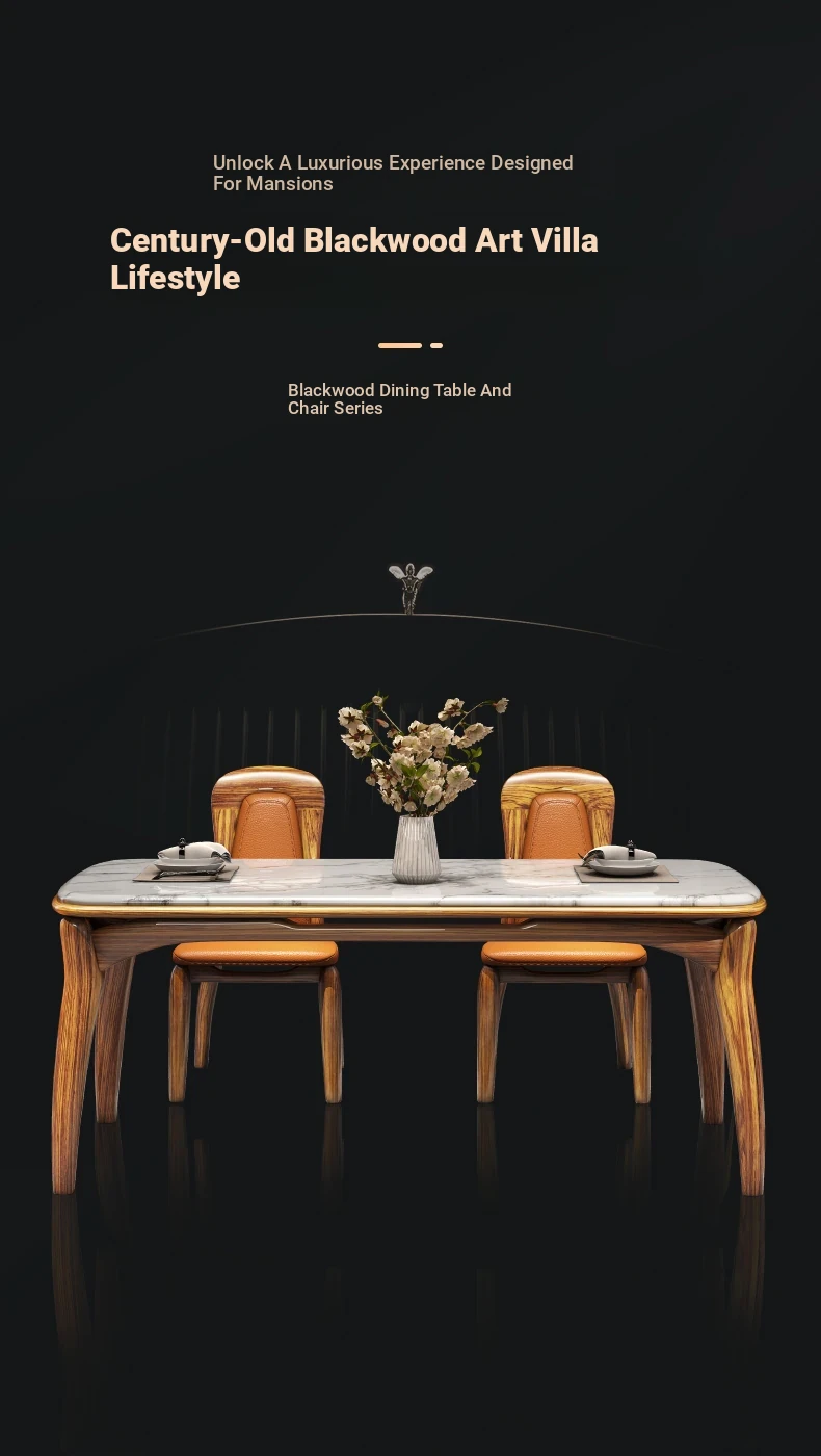 Modern Chinese Style Blackwood Dining Table and Chair Set - Simple Rectangular Solid Wood Dining Table with Marble Top for Home Use