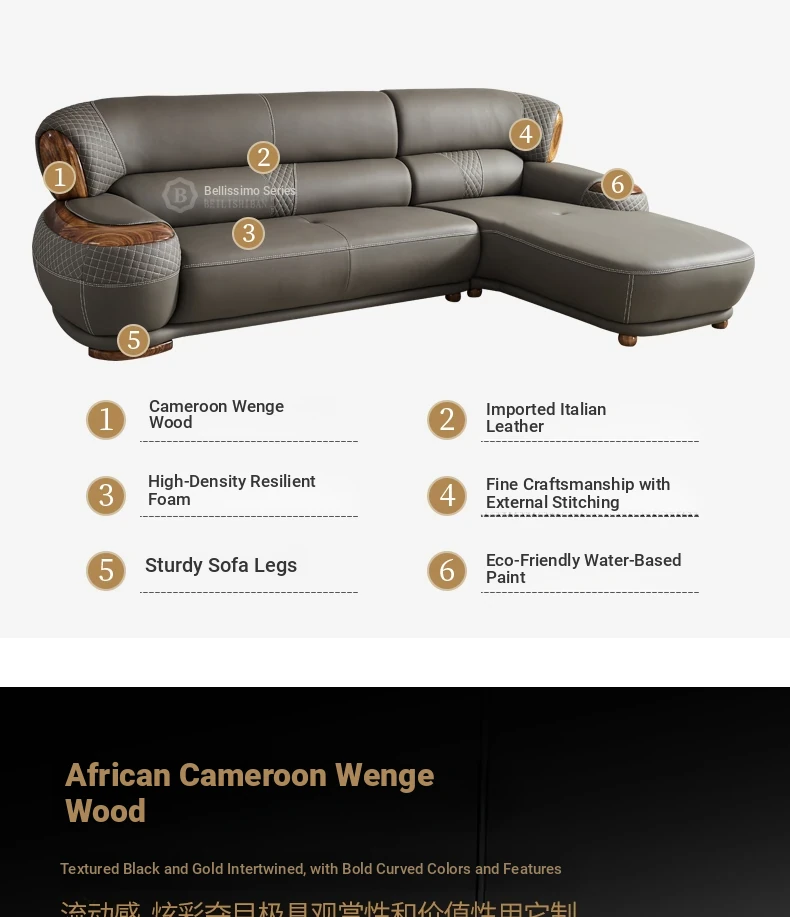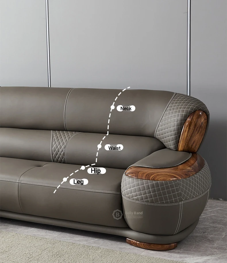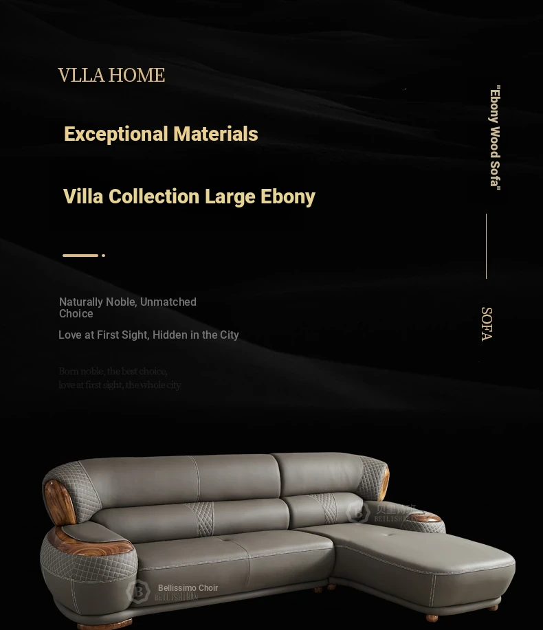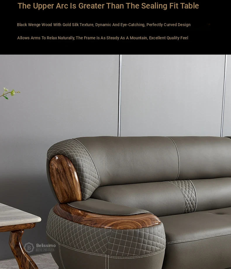 Modern Chinese-Style Genuine Leather Sofa with Ukin Wood - Minimalist Corner Sofa in Top-Grain Cowhide and Solid Wood for the Living Room - New 2024 Collection