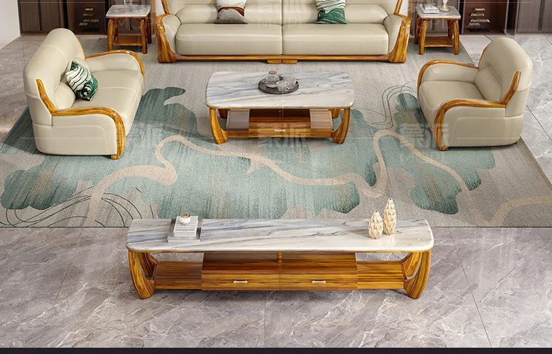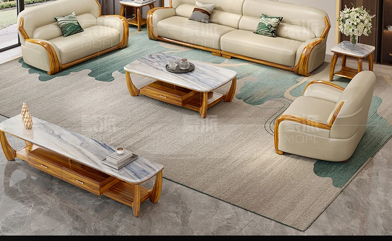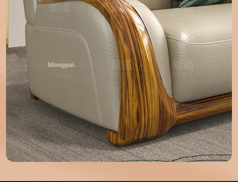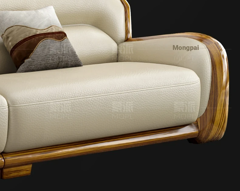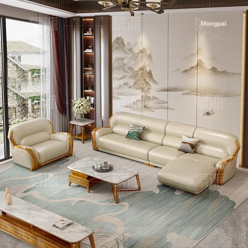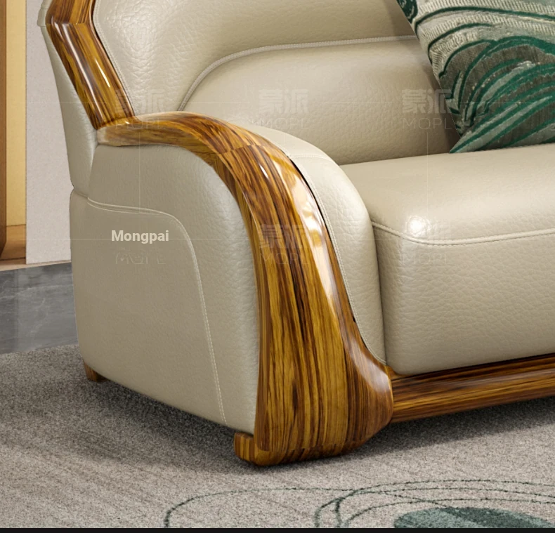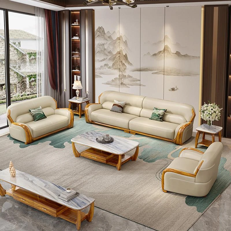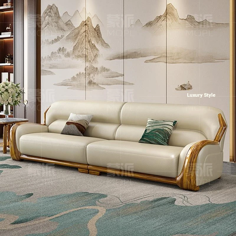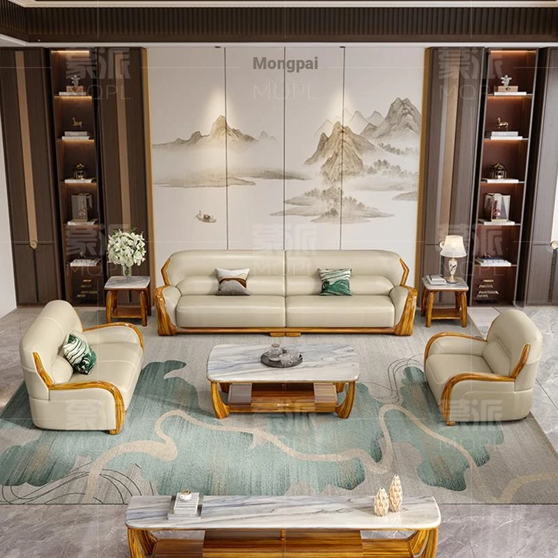 Modern High-End New Chinese Style Solid Wood Sofa with Genuine Leather for Living Room - Luxurious Blackwood Design from Foshan, Guangdong