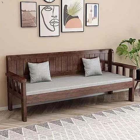 Modern Minimalist Solid Wood Sofa for Small Living Rooms - Three-Seat New Chinese Style Relaxation Bench Set for Balcony