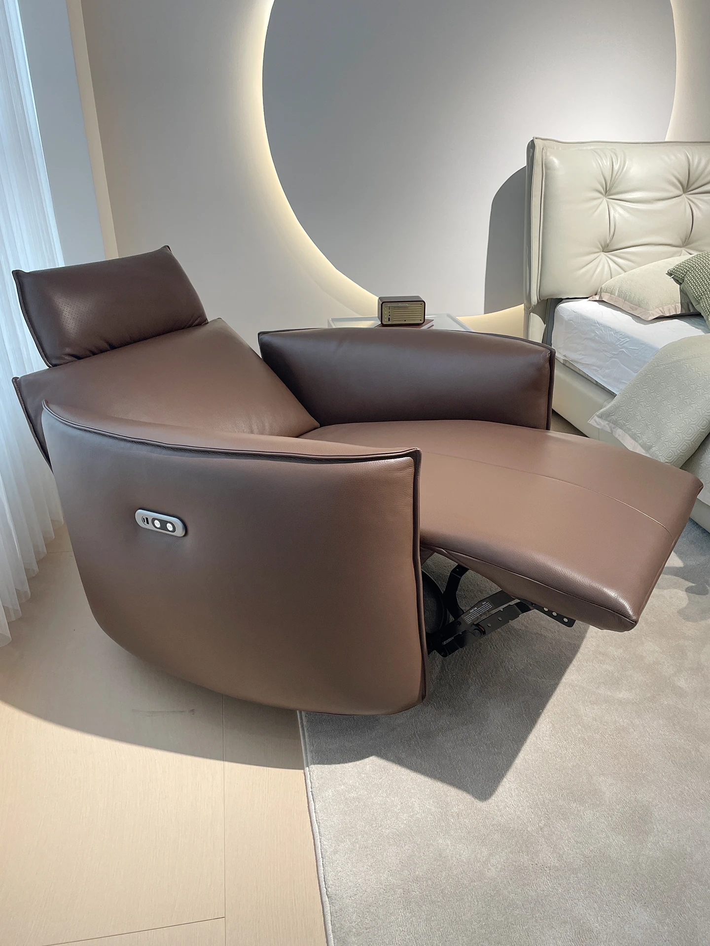 New Minimalist Genuine Leather Electric Recliner Armchair - Stylish Rotating Rocking Chair for Modern Living Rooms by Designer