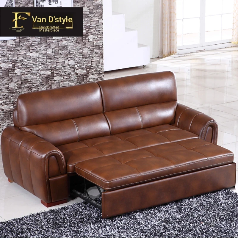 Foldable Genuine Leather Sofa Bed - Multifunctional for Living Room, Apartment & Small Spaces - Stylish 3-Seater with Chaise Lounge Corner Design