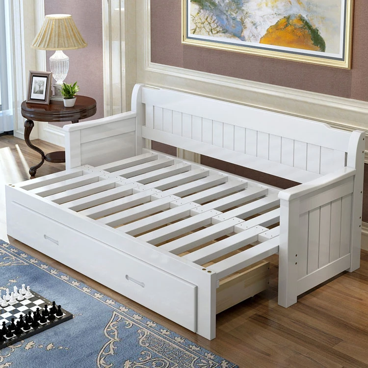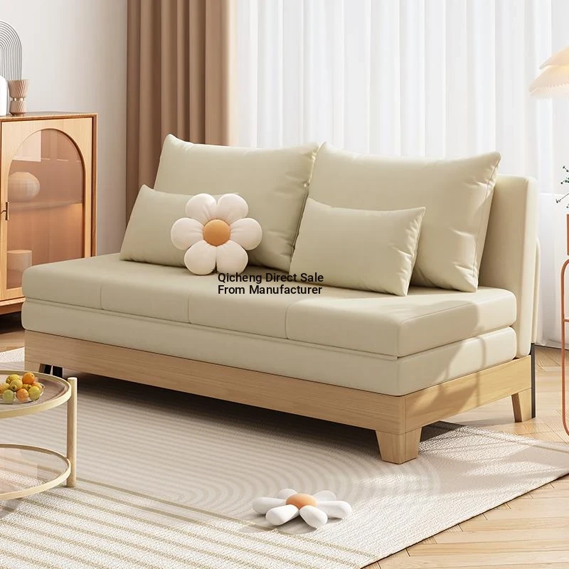 Multifunctional Solid Wood Sofa Bed for Living Room - Foldable and Pull-Out Design, Perfect for Small Spaces, Available in 1.2m, 1.5m, and 1.8m for Comfortable Seating and Sleeping Solutions.