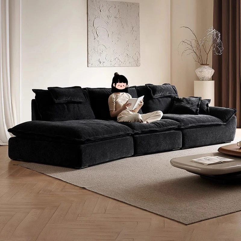 Chic Chenille Sofa with Movable Backrest - Unique Cloud-Shaped Design in Black, Perfect for Modern Spaces - Foshan Longjiang Collection