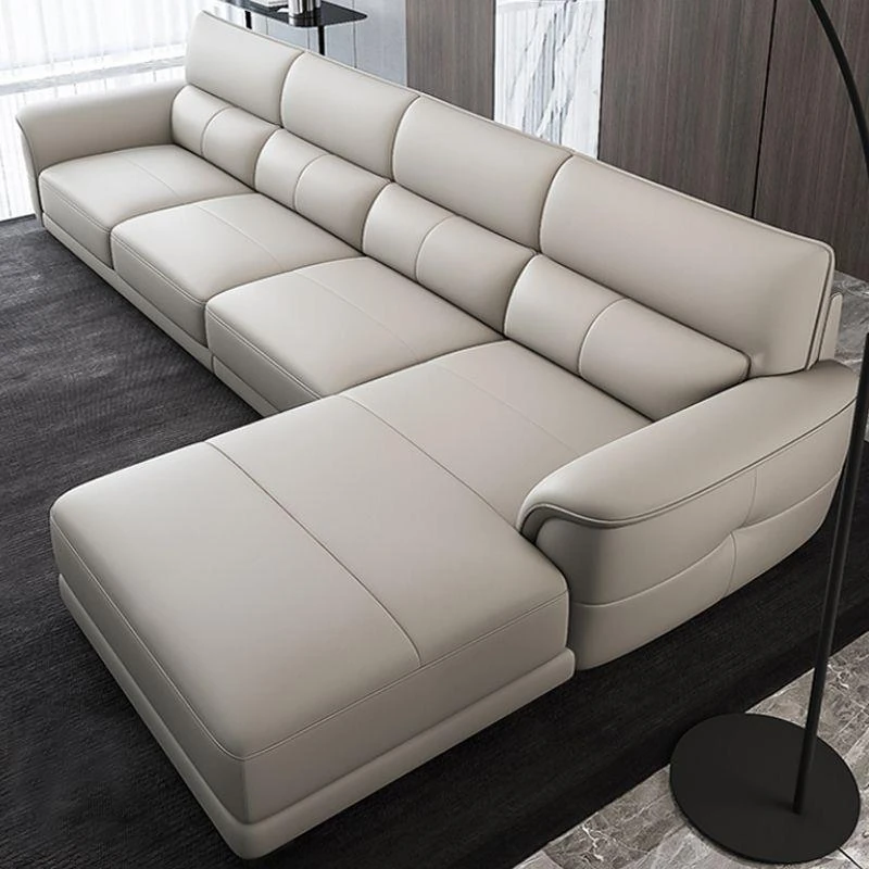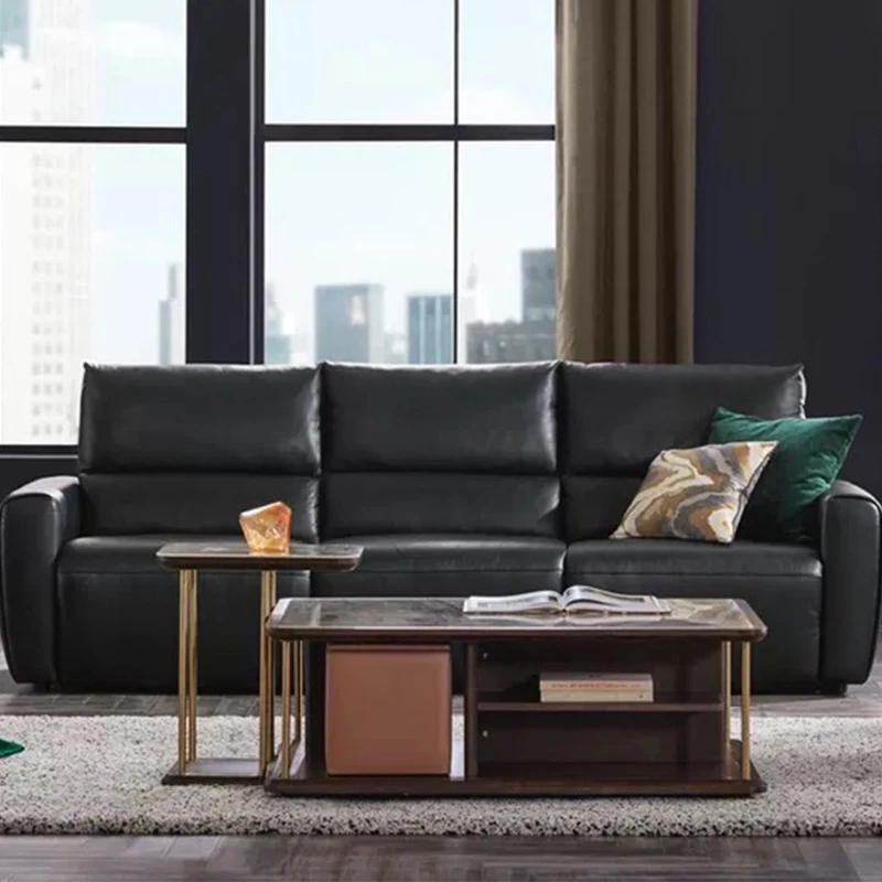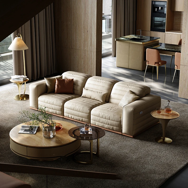 Luxury Designer Straight Sofa for High-End Villas and Spacious Homes - Modern Minimalist Genuine Leather Sofa for Living Room