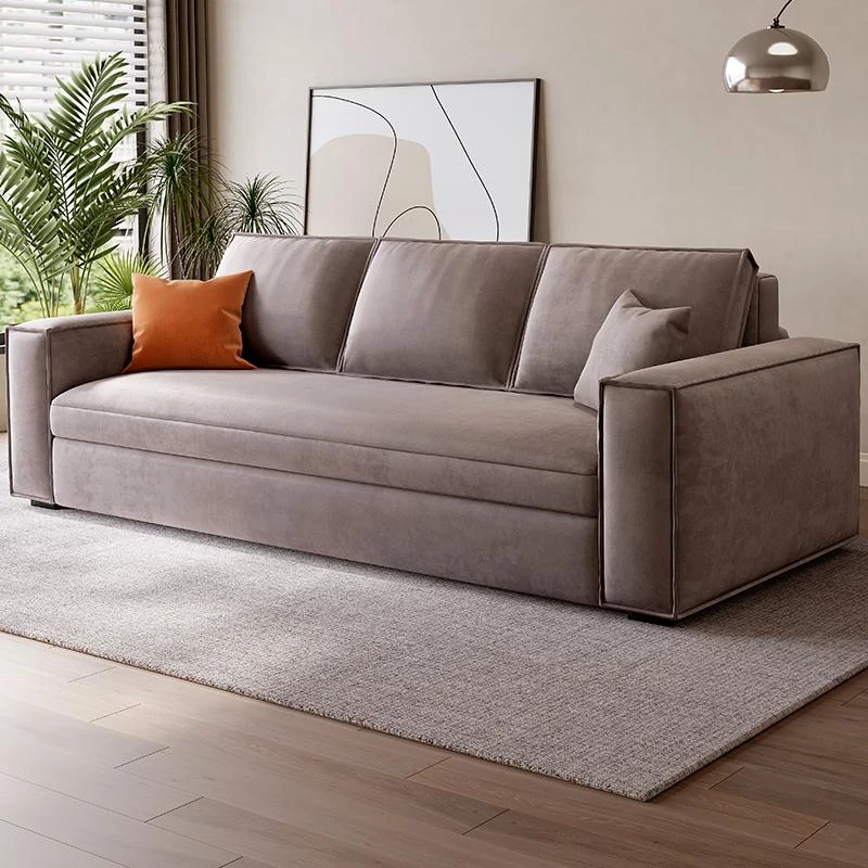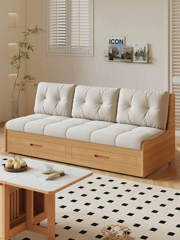 Modern Minimalist Solid Wood Sofa Bed - Foldable, Space-Saving with Storage, Expandable for Nordic Small Apartments, Dual-Purpose for Living Room, Comfortable Double Sofa