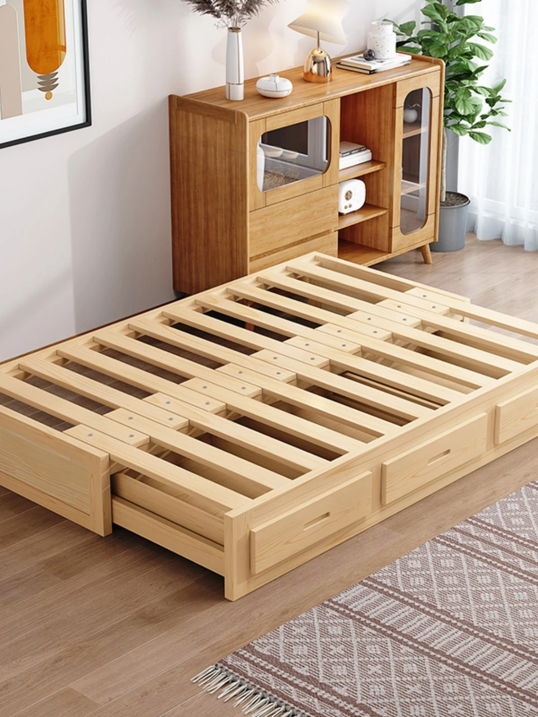 Multifunctional Solid Wood Tatami Bed with Pull-Out Storage, Adjustable Sofa Bed - Perfect Space-Saving Solution for Small Apartments!