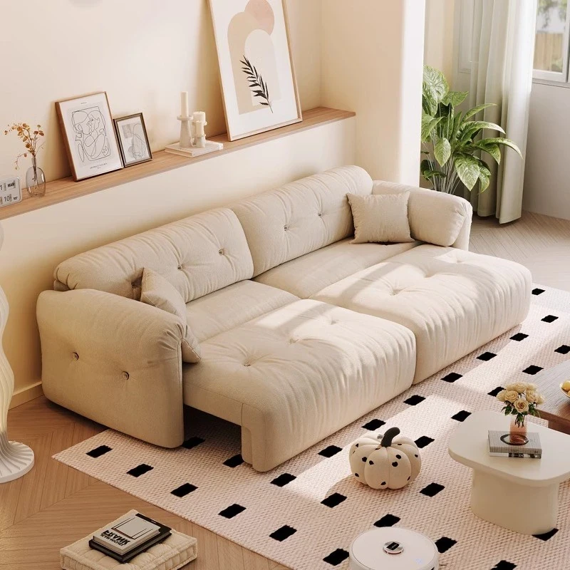 Cloud Electric Sofa Bed - Foldable, Retractable, and Multi-functional for Living Room, No Wall Clearance Needed, Creamy Aesthetic for Stylish Comfort